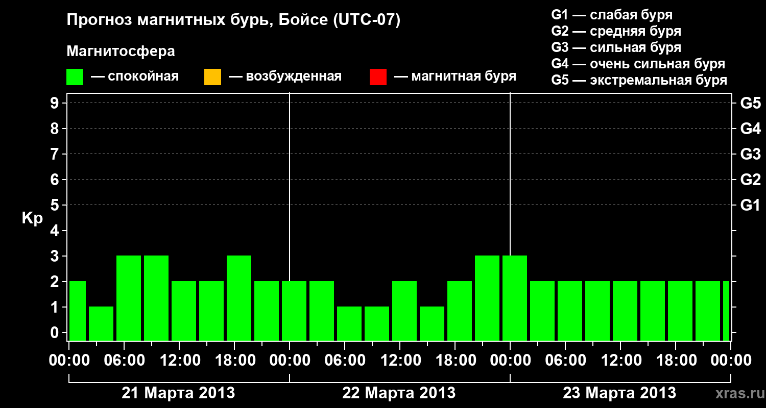 Прогноз магнитных бурь в Бойсе на 21 марта 2013 года