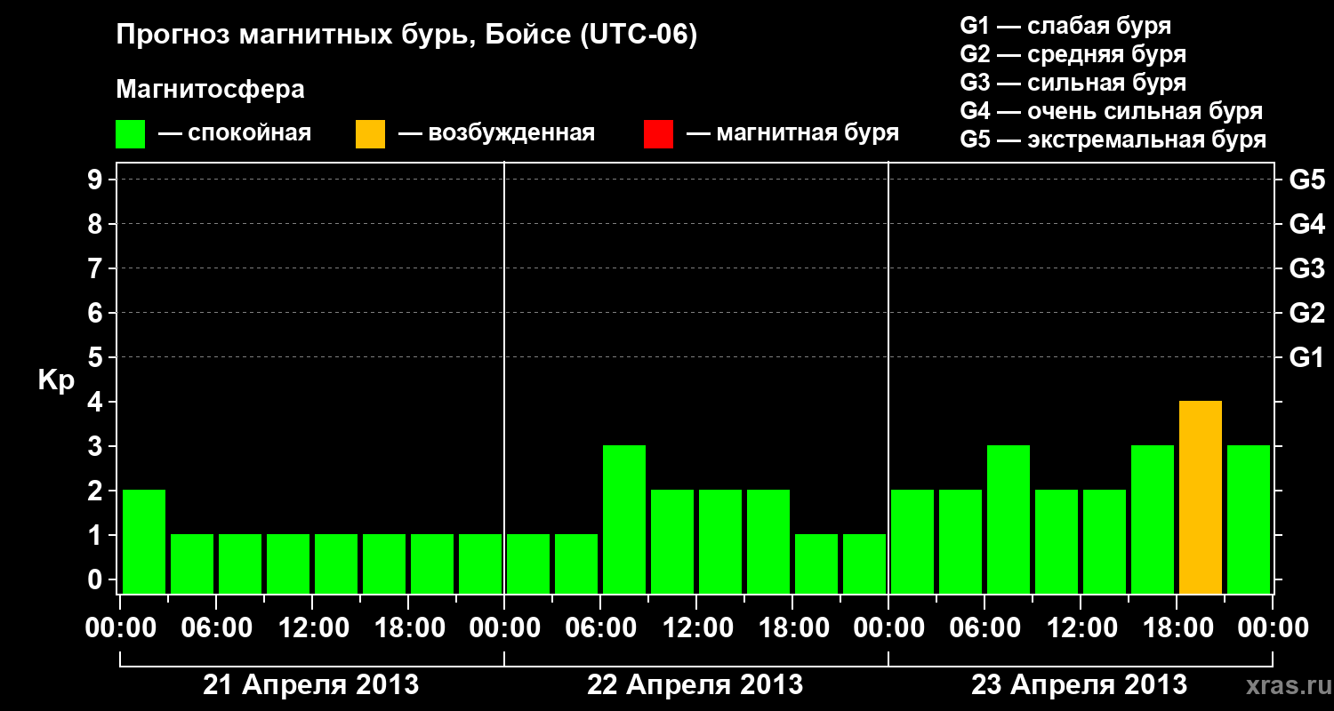 Прогноз магнитных бурь в Бойсе на 21 апреля 2013 года