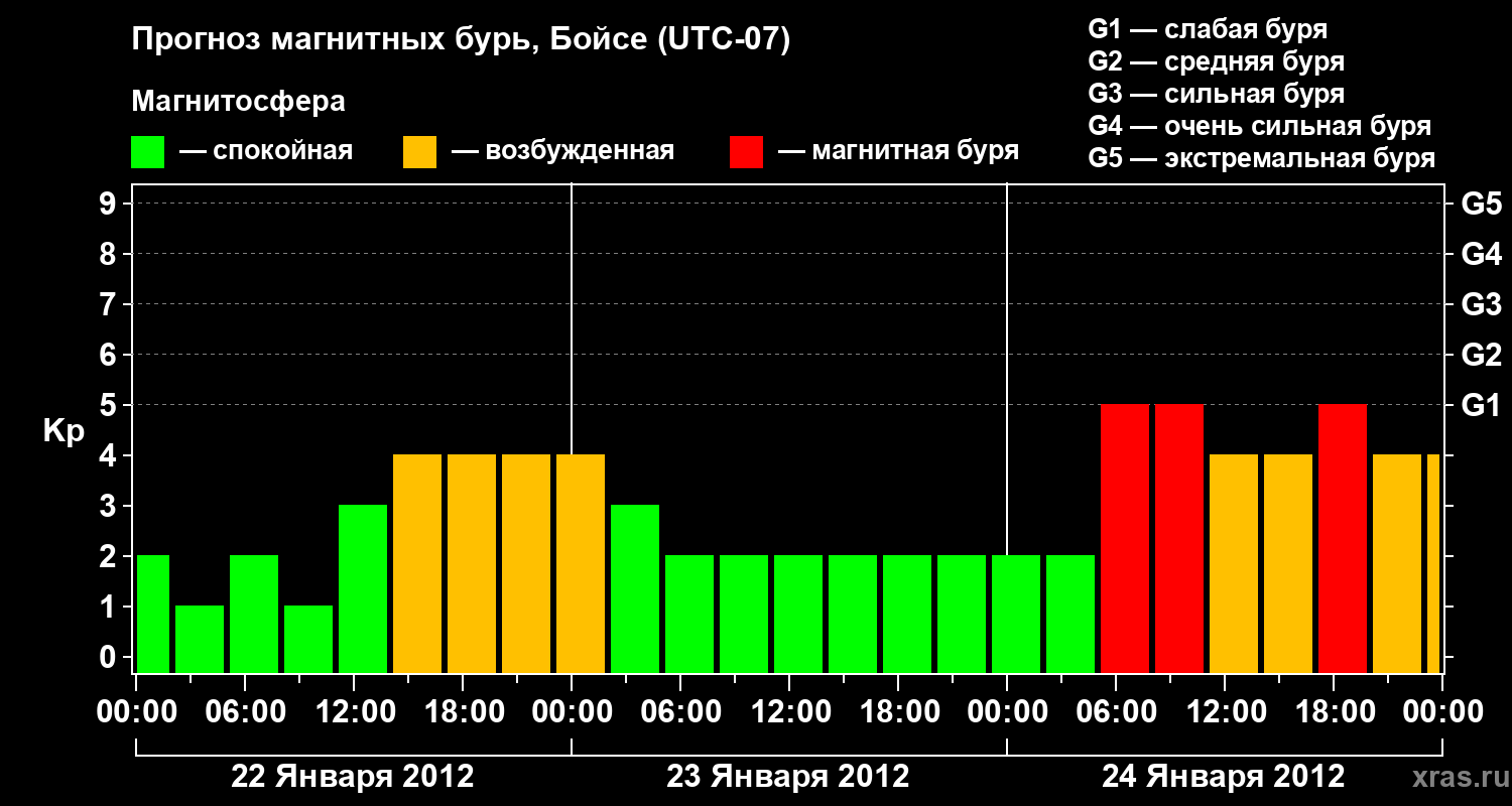 Прогноз магнитных бурь в Бойсе на 22 января 2012 года
