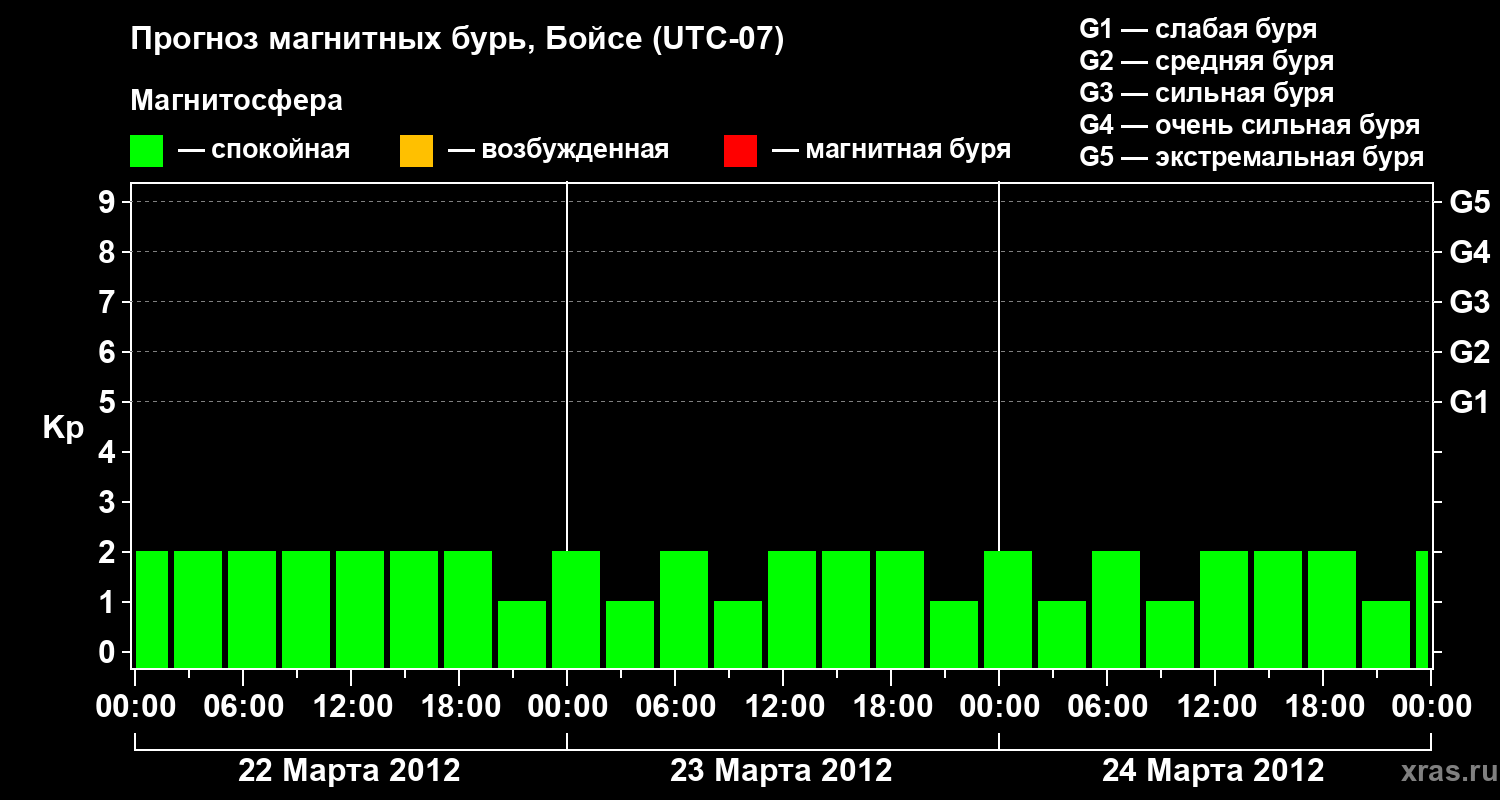 Прогноз магнитных бурь в Бойсе на 22 марта 2012 года