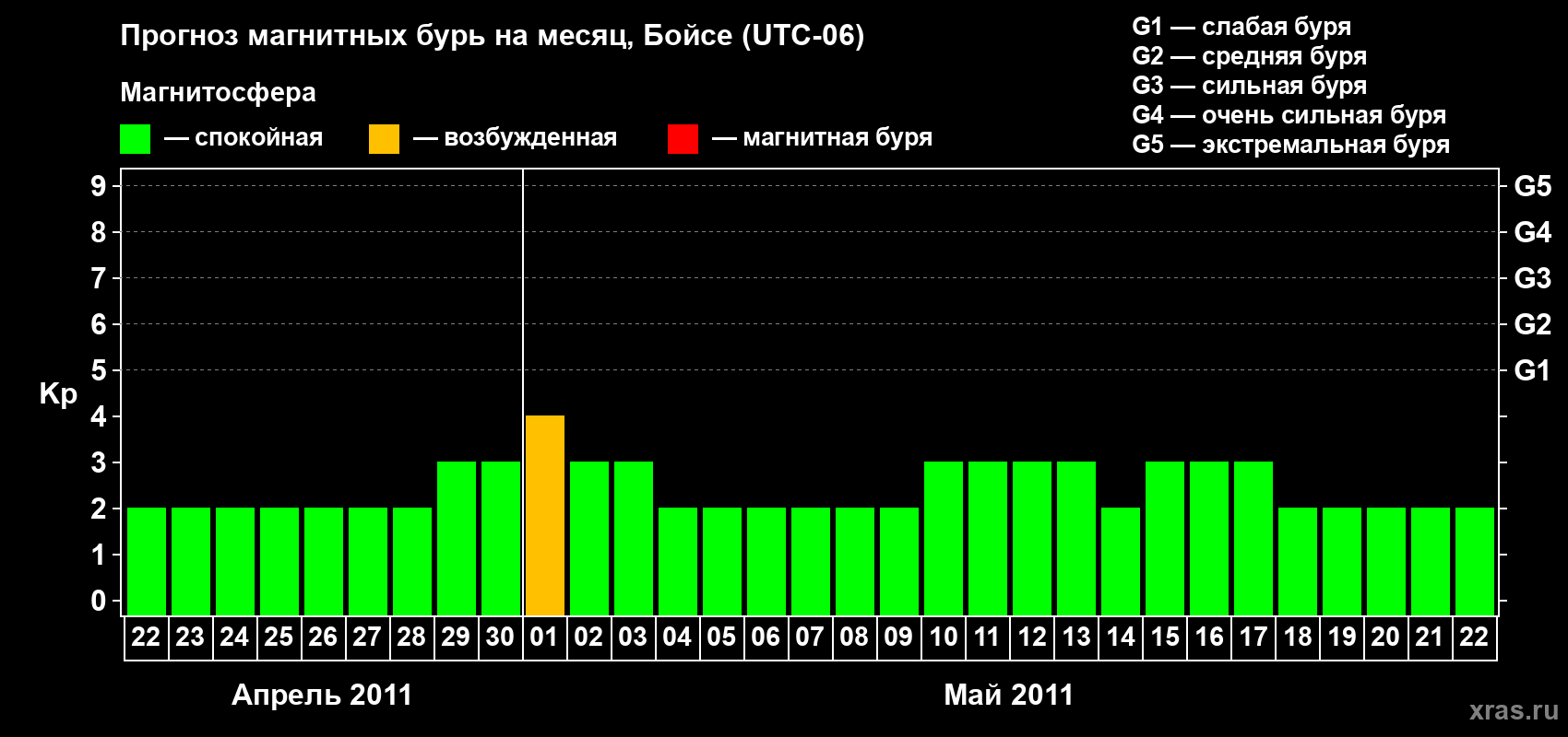 Прогноз магнитных бурь в Бойсе — 22 апреля 2011 года