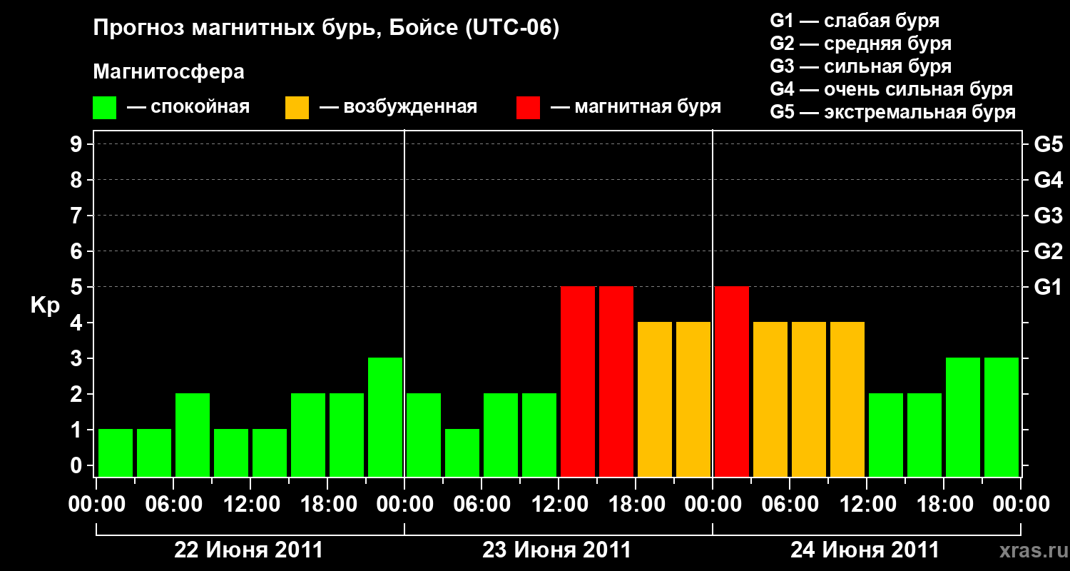 Прогноз магнитных бурь в Бойсе на 22 июня 2011 года