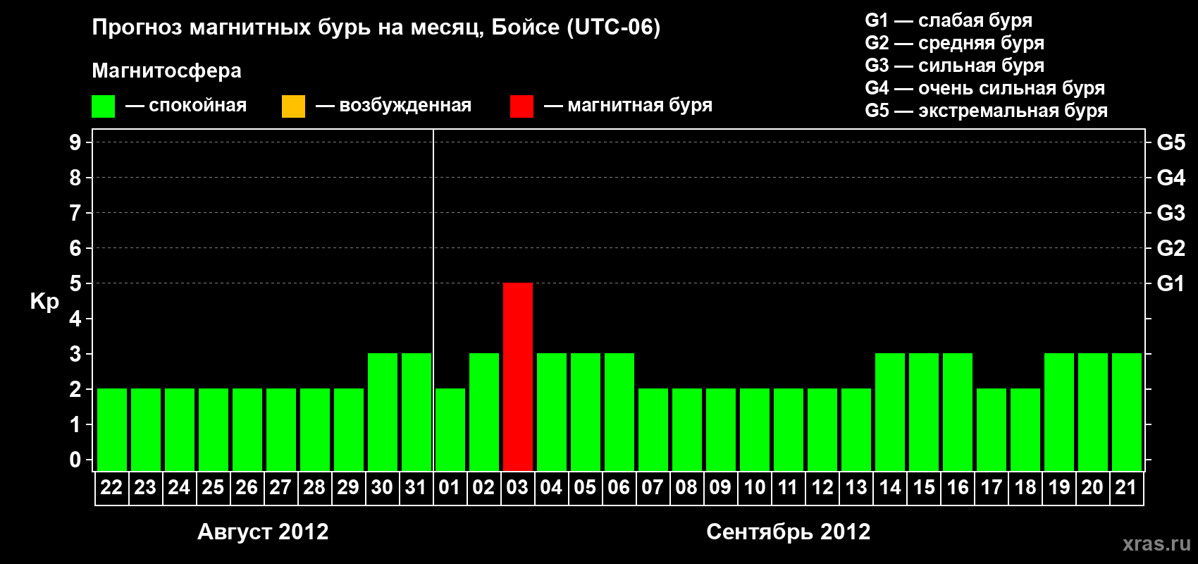 Прогноз магнитных бурь в Бойсе на 22 августа 2012 года