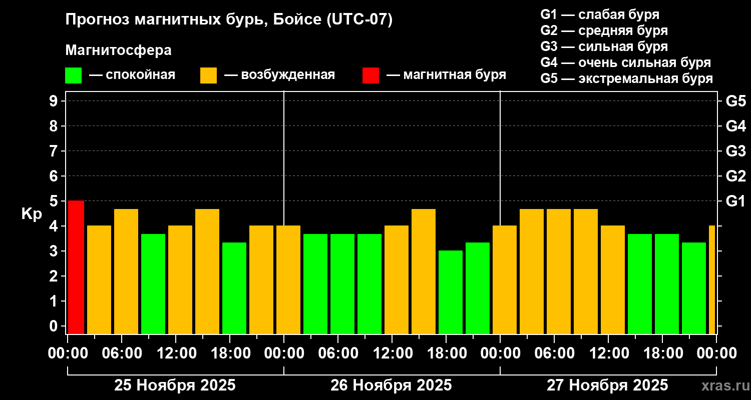 Прогноз магнитных бурь в Бойсе на 25 ноября 2025 года