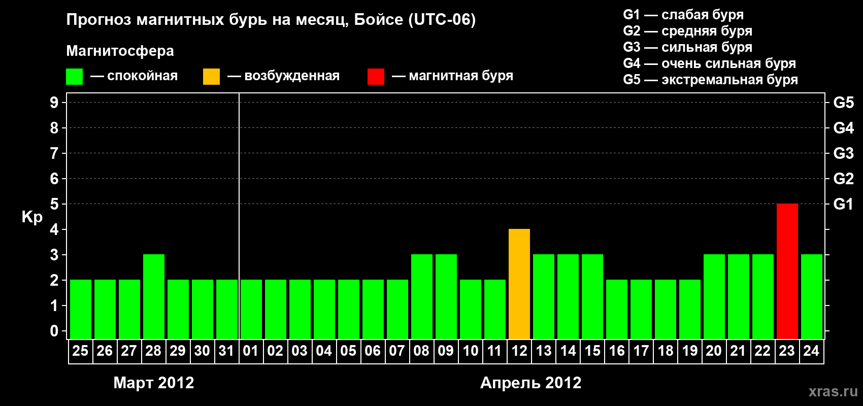 Прогноз магнитных бурь в Бойсе — 25 марта 2012 года
