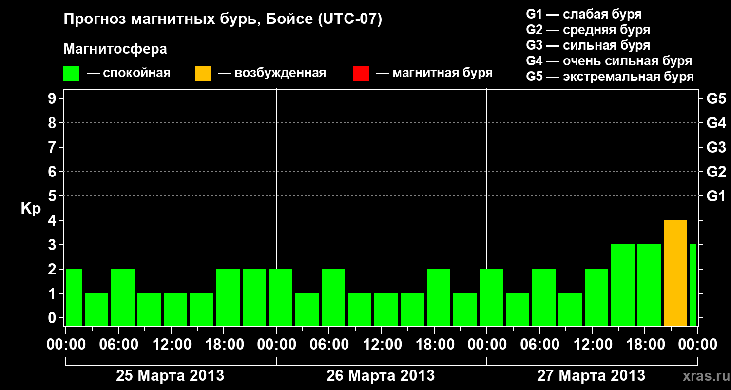 Прогноз магнитных бурь в Бойсе на 25 марта 2013 года