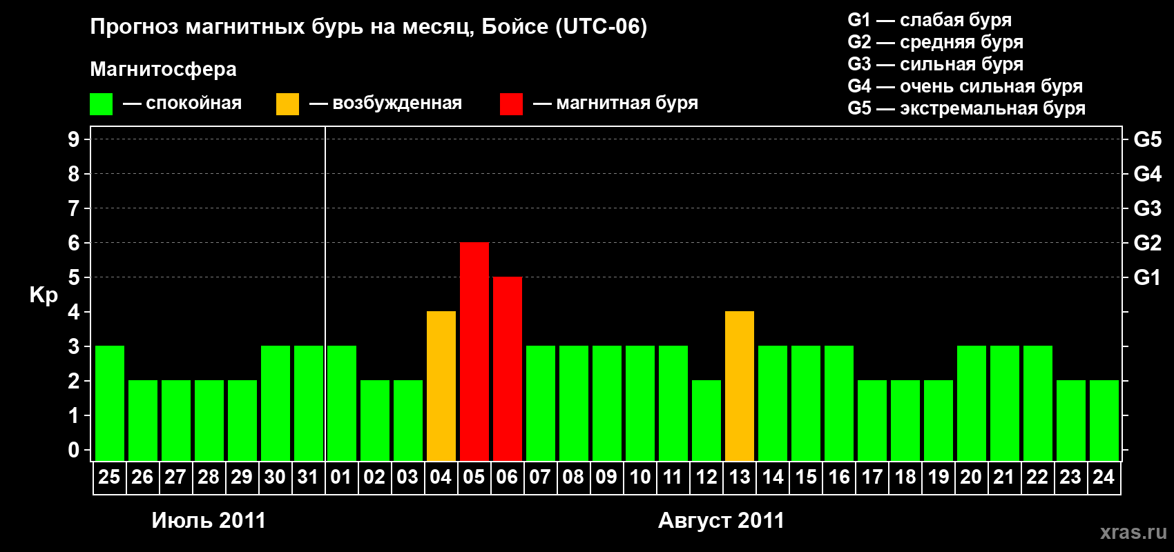 Прогноз магнитных бурь в Бойсе — 25 июля 2011 года