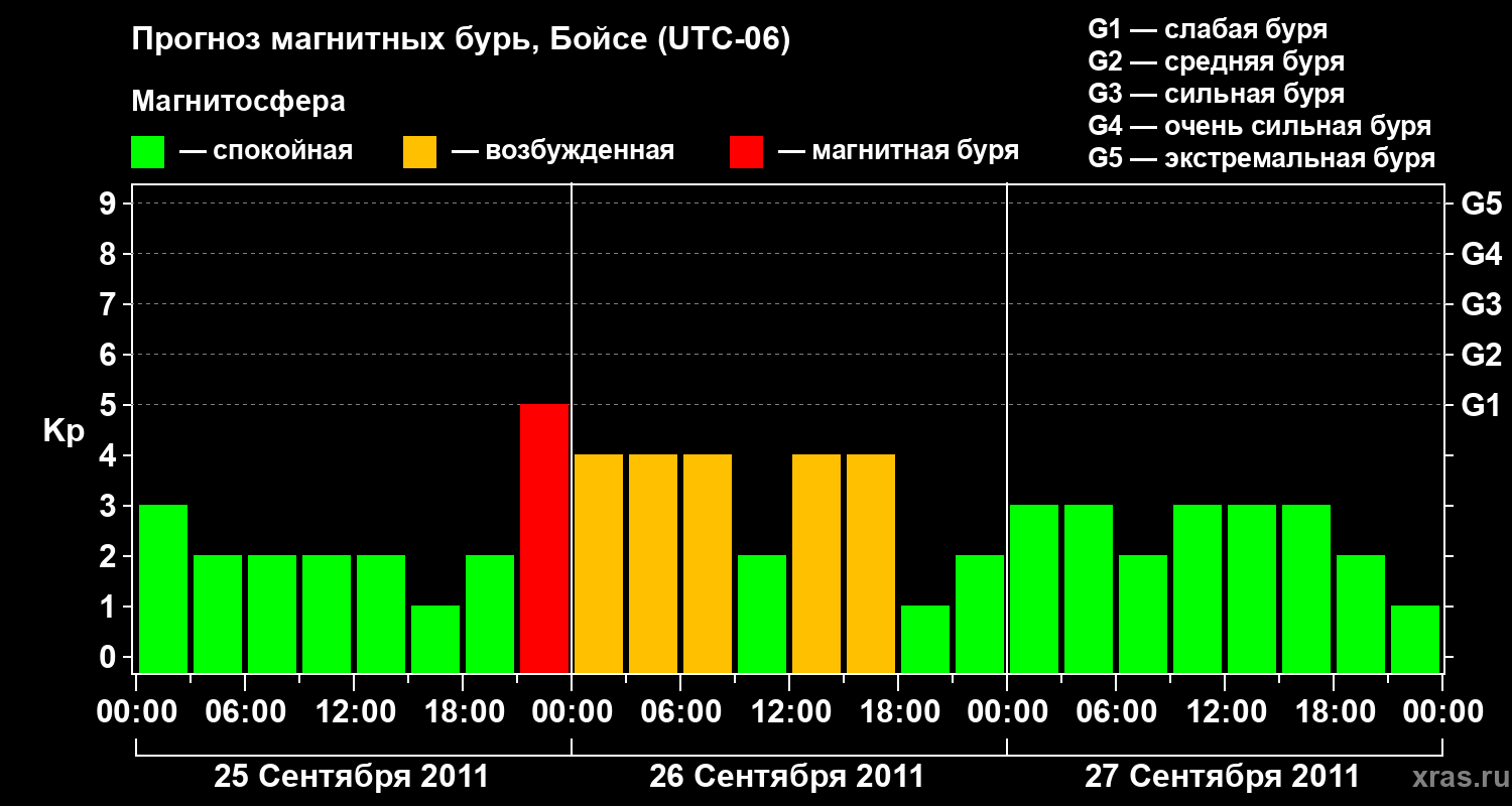 Прогноз магнитных бурь в Бойсе на 25 сентября 2011 года