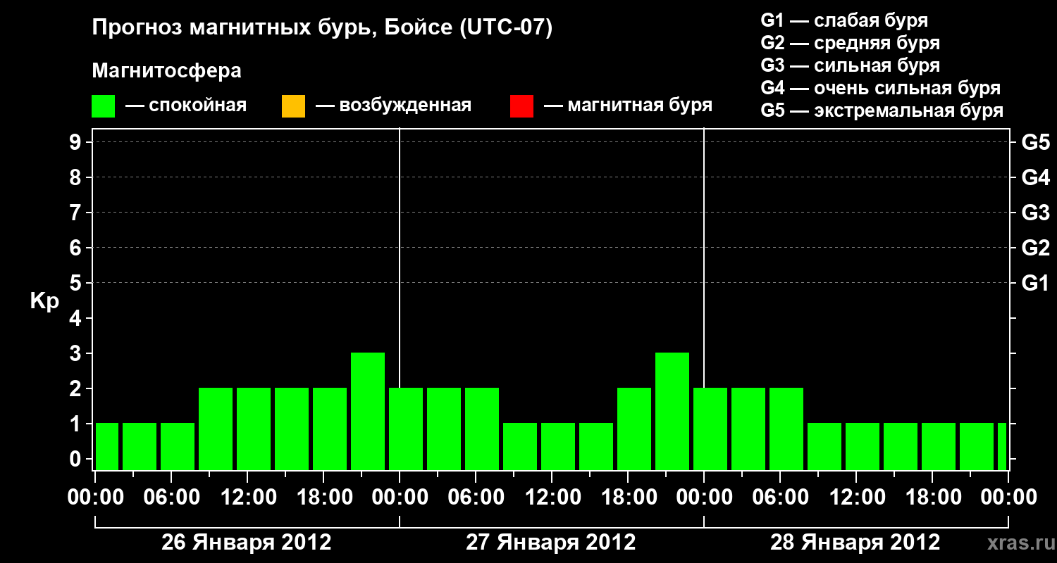 Прогноз магнитных бурь в Бойсе на 26 января 2012 года