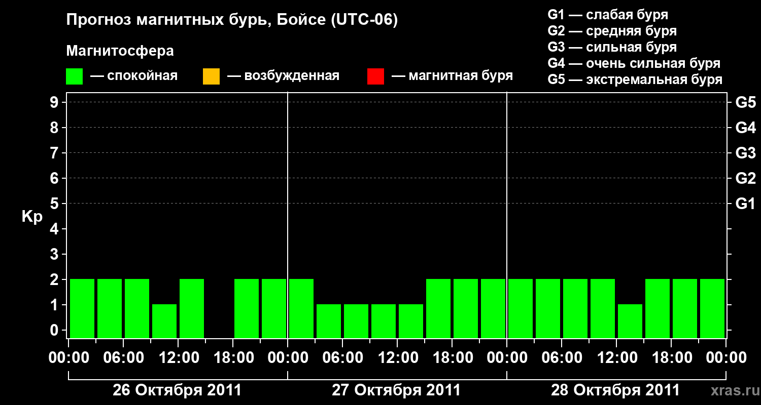 Прогноз магнитных бурь в Бойсе на 26 октября 2011 года