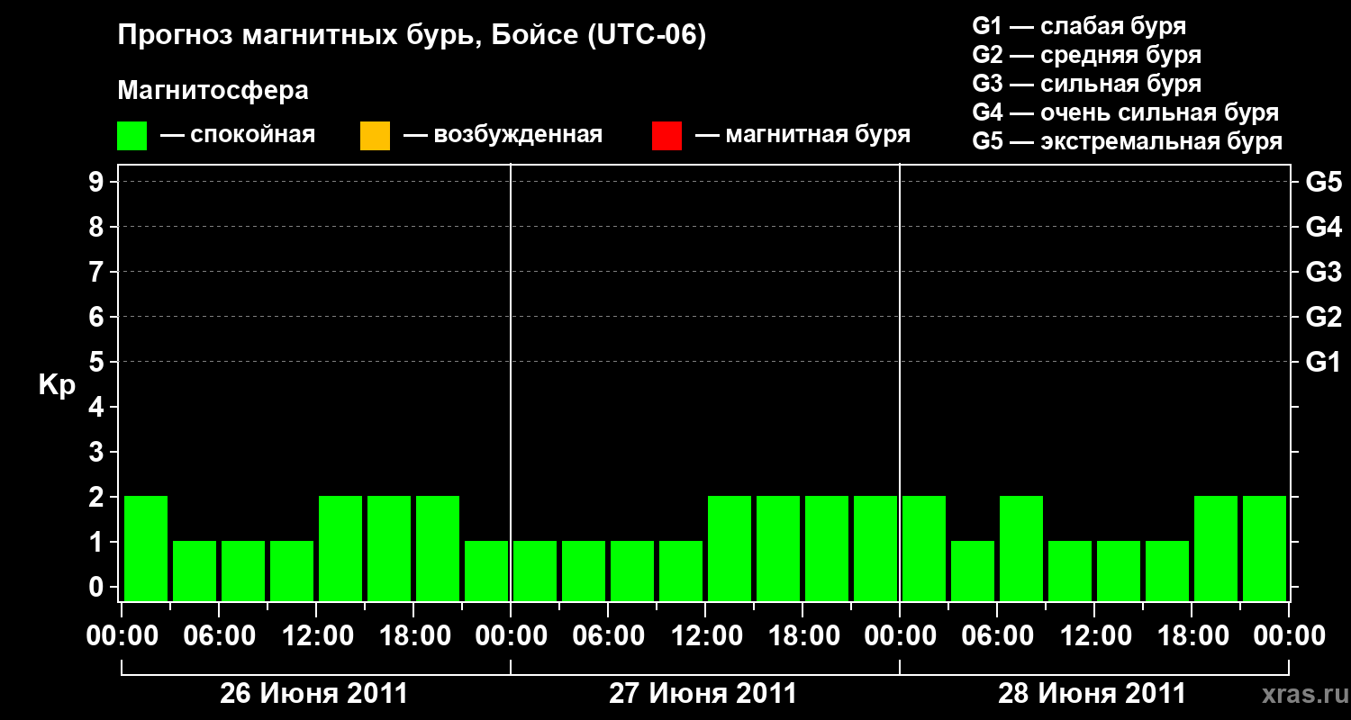 Прогноз магнитных бурь в Бойсе на 26 июня 2011 года