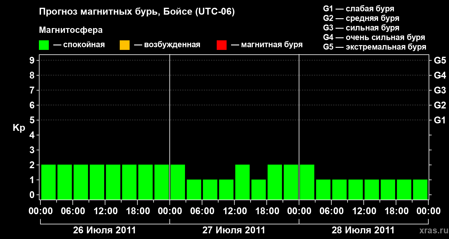 Прогноз магнитных бурь в Бойсе на 26 июля 2011 года