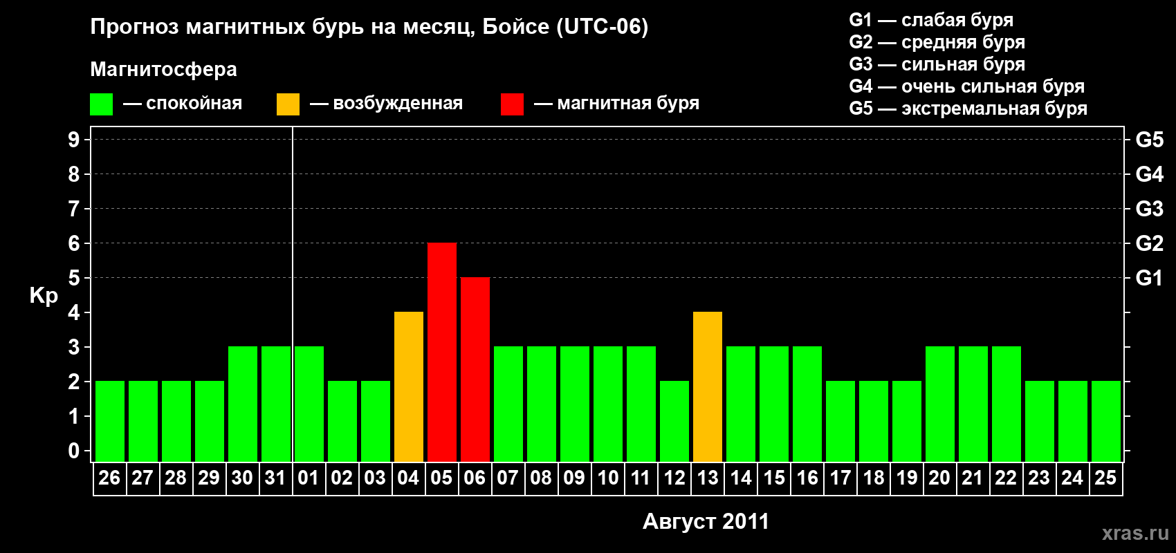 Прогноз магнитных бурь в Бойсе — 26 июля 2011 года