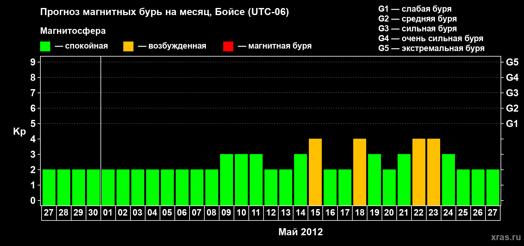 Прогноз магнитных бурь в Бойсе на 27 апреля 2012 года