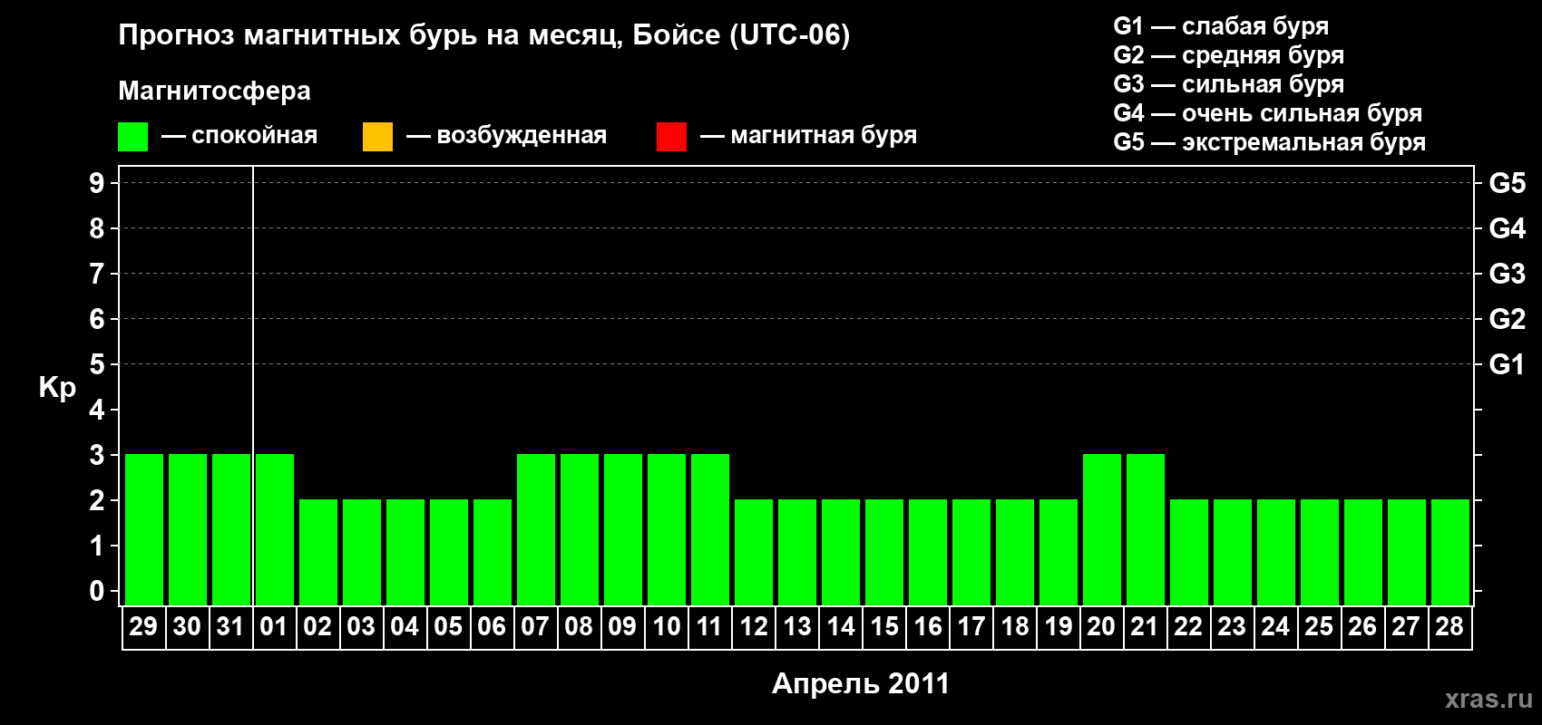 Прогноз магнитных бурь в Бойсе — 29 марта 2011 года