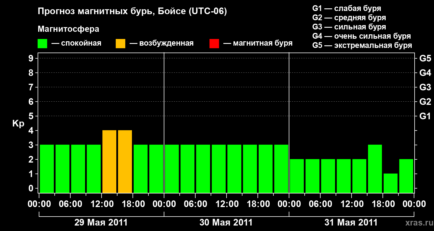 Прогноз магнитных бурь в Бойсе — 29 мая 2011 года