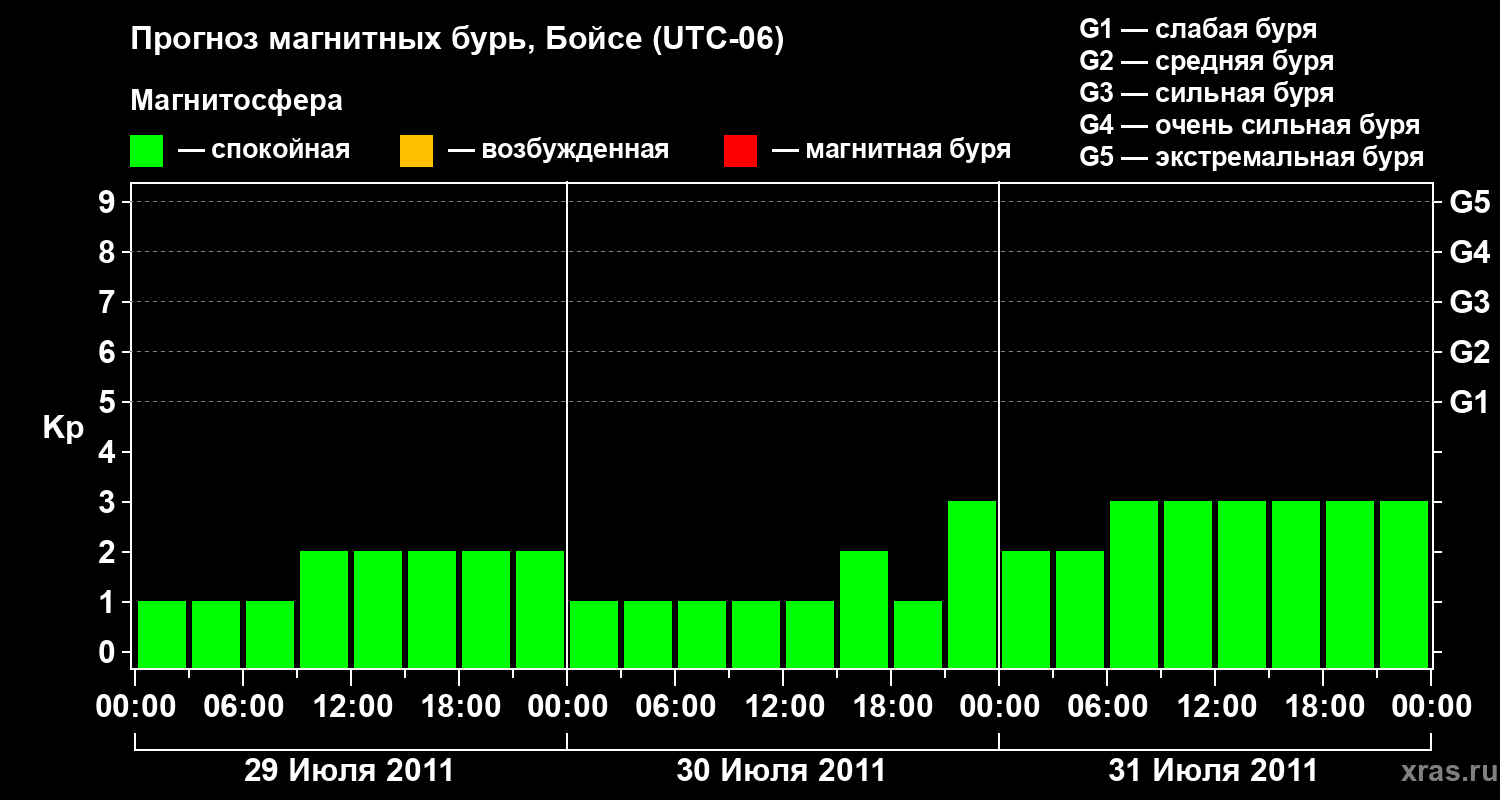 Прогноз магнитных бурь в Бойсе — 29 июля 2011 года