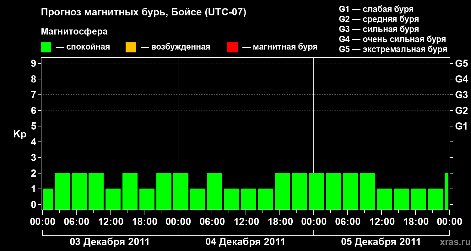 Прогноз магнитных бурь в Бойсе на 3 декабря 2011 года