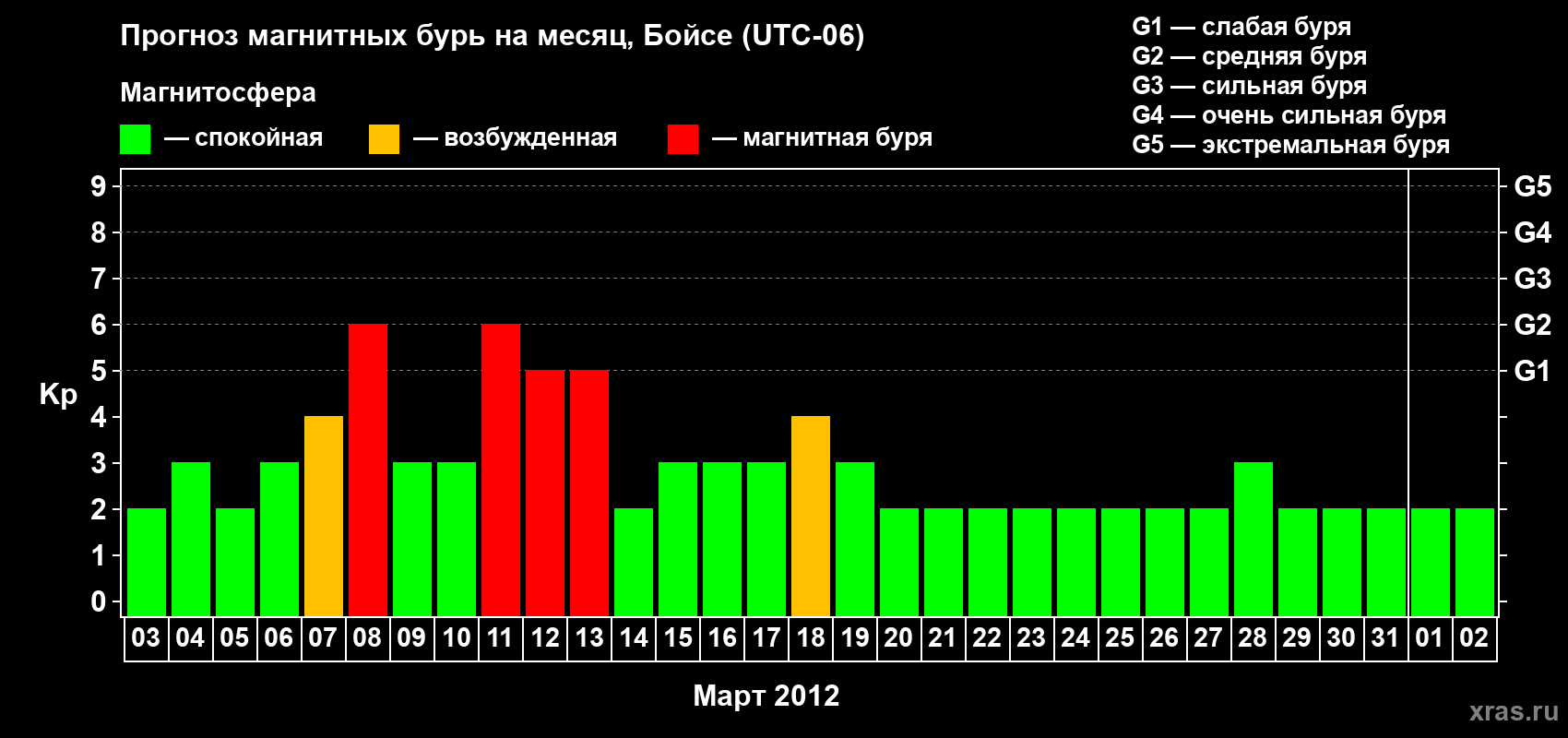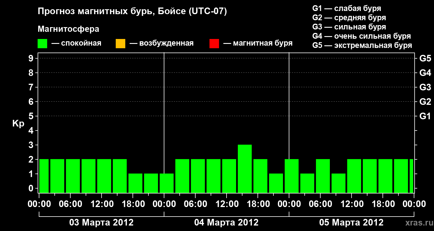 Прогноз магнитных бурь в Бойсе на 3 марта 2012 года
