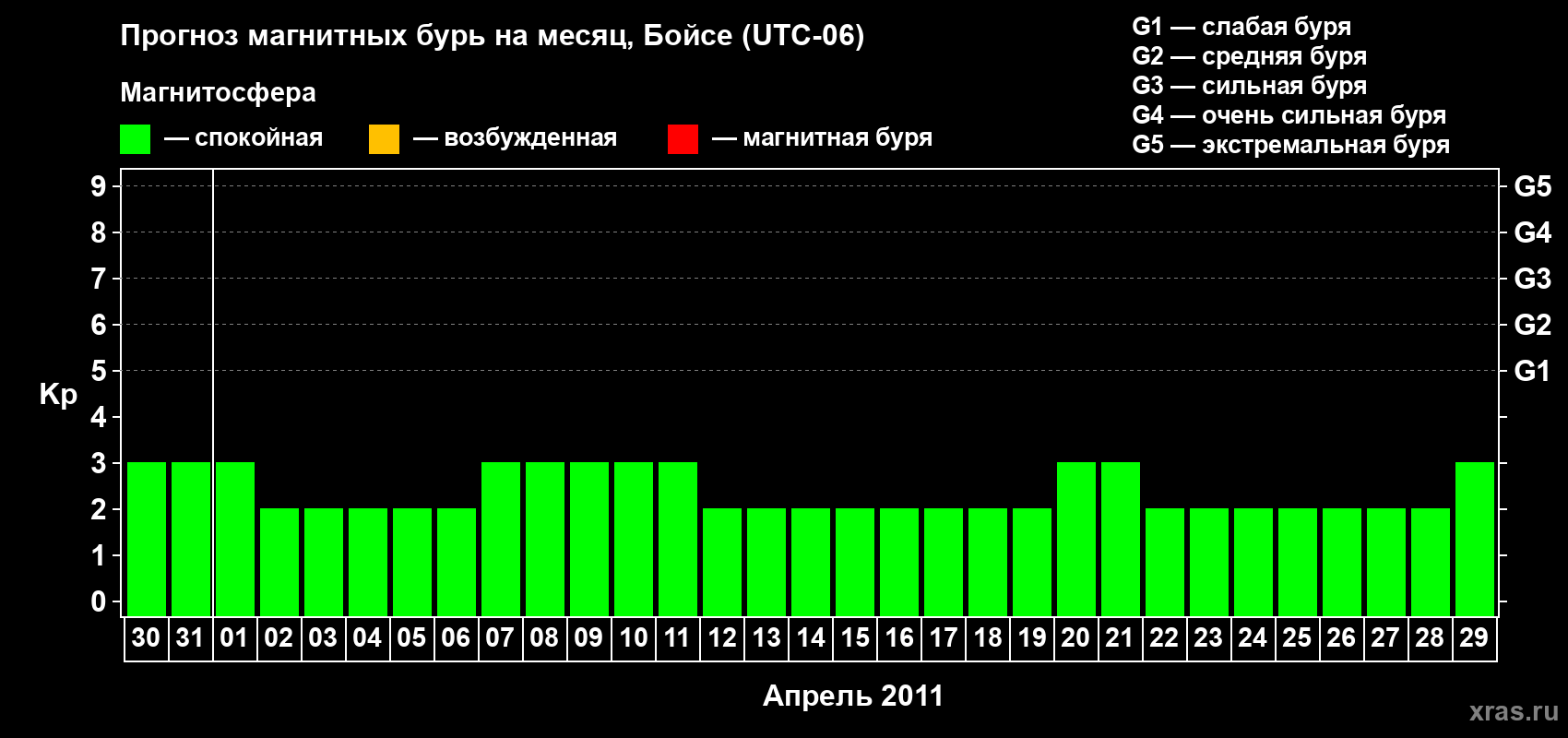 Прогноз магнитных бурь в Бойсе — 30 марта 2011 года