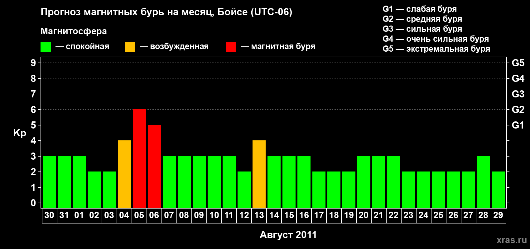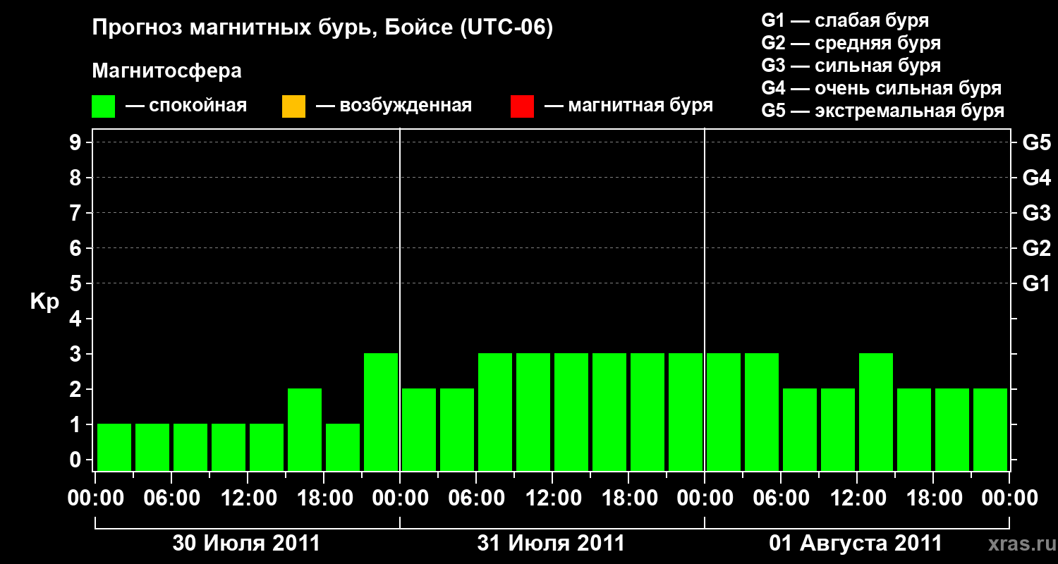 Прогноз магнитных бурь в Бойсе — 30 июля 2011 года