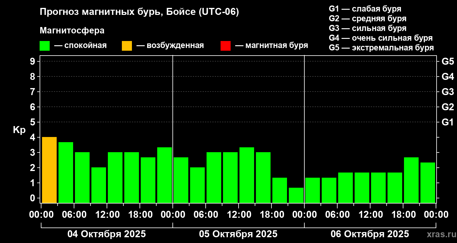 Прогноз магнитных бурь в Бойсе на 4 октября 2025 года