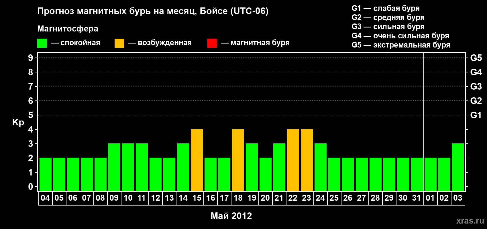 Прогноз магнитных бурь в Бойсе на 4 мая 2012 года