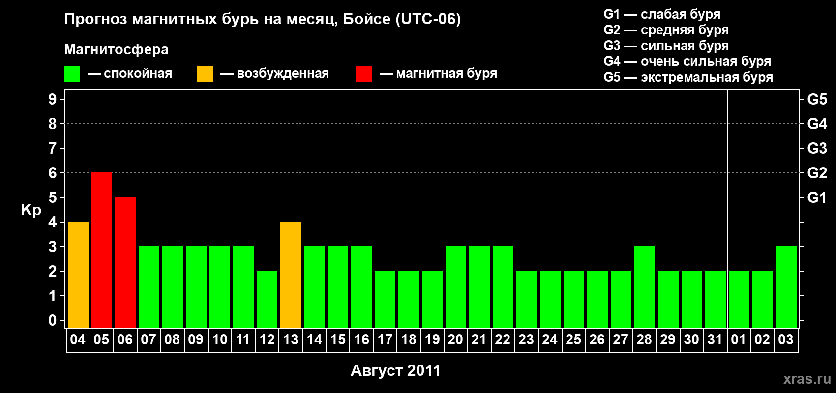 Прогноз магнитных бурь в Бойсе — 4 августа 2011 года