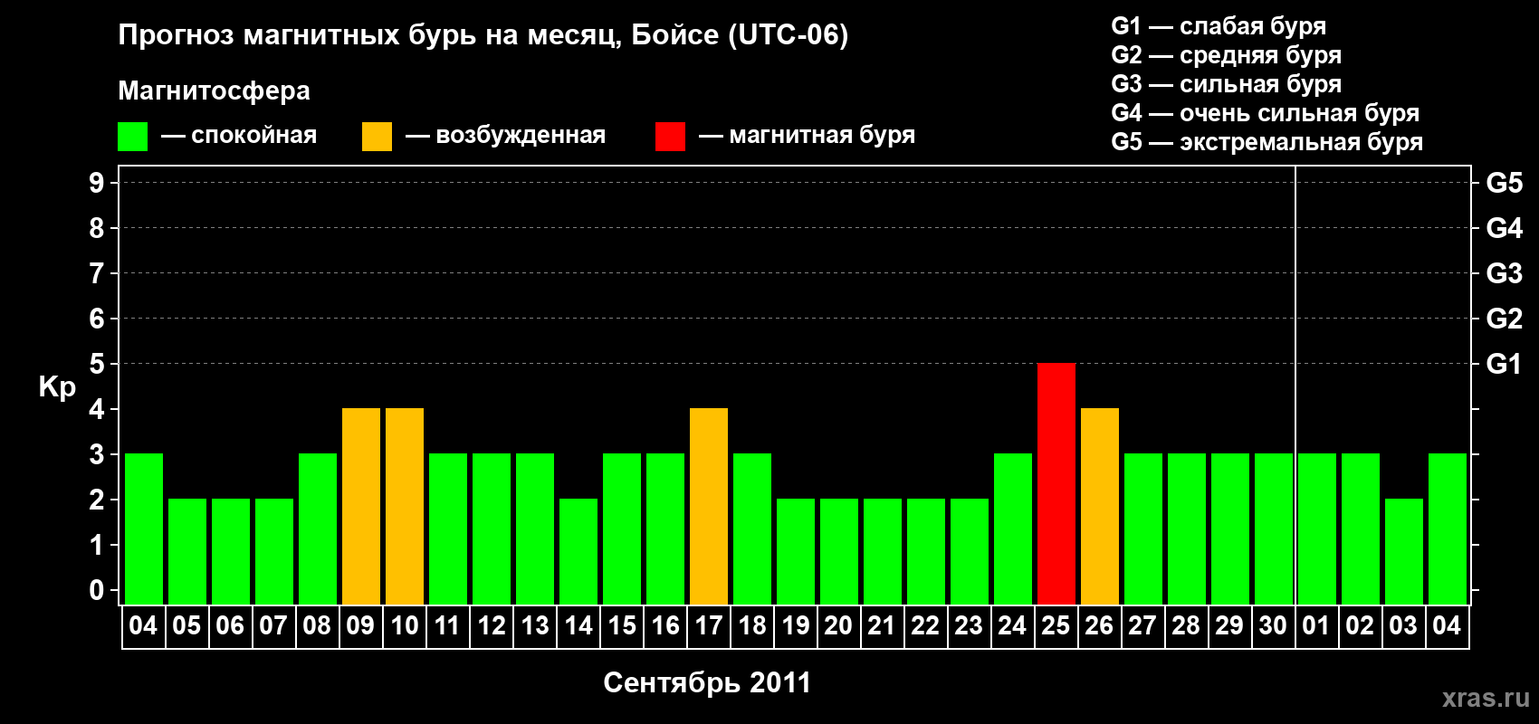 Прогноз магнитных бурь в Бойсе на 4 сентября 2011 года