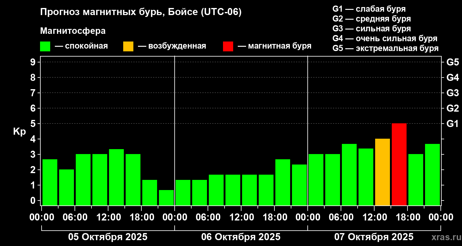 Прогноз магнитных бурь в Бойсе — 5 октября 2025 года
