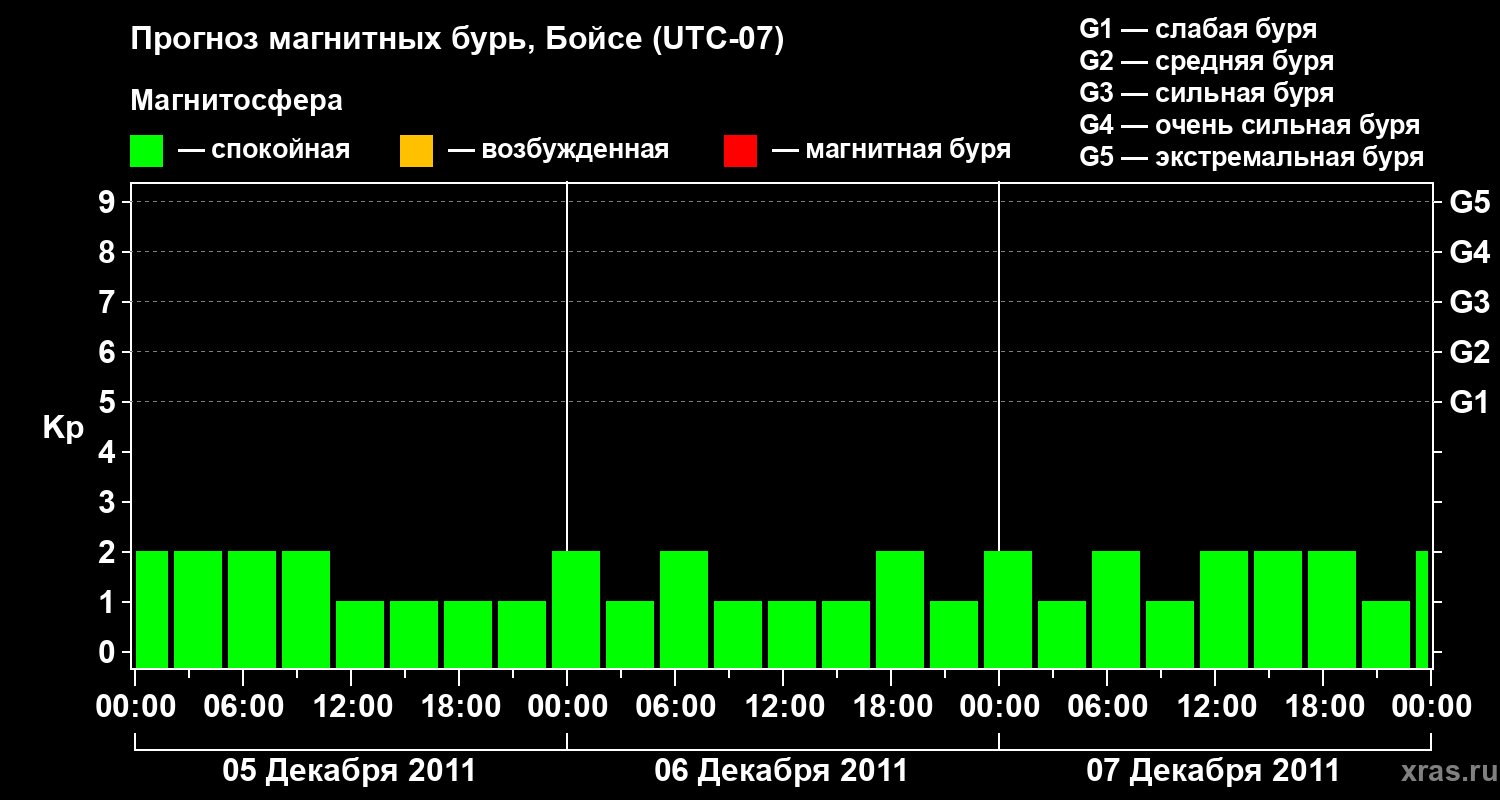 Прогноз магнитных бурь в Бойсе на 5 декабря 2011 года