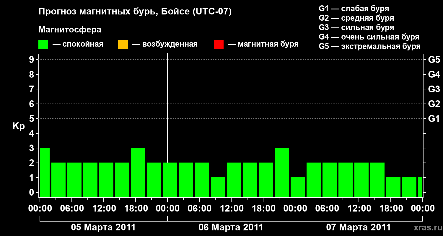 Прогноз магнитных бурь в Бойсе на 5 марта 2011 года