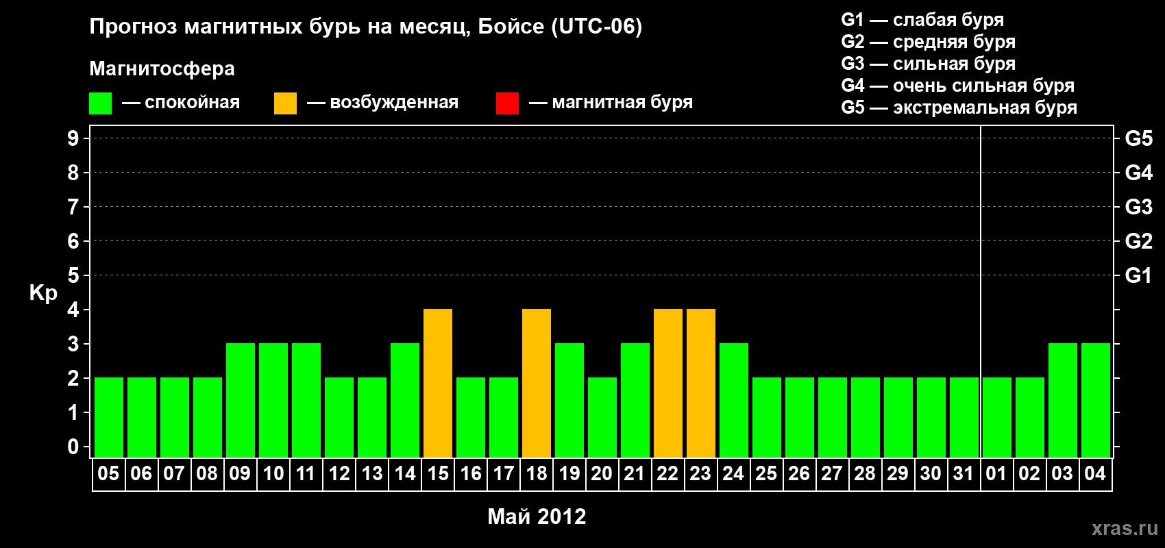 Прогноз магнитных бурь в Бойсе на 5 мая 2012 года