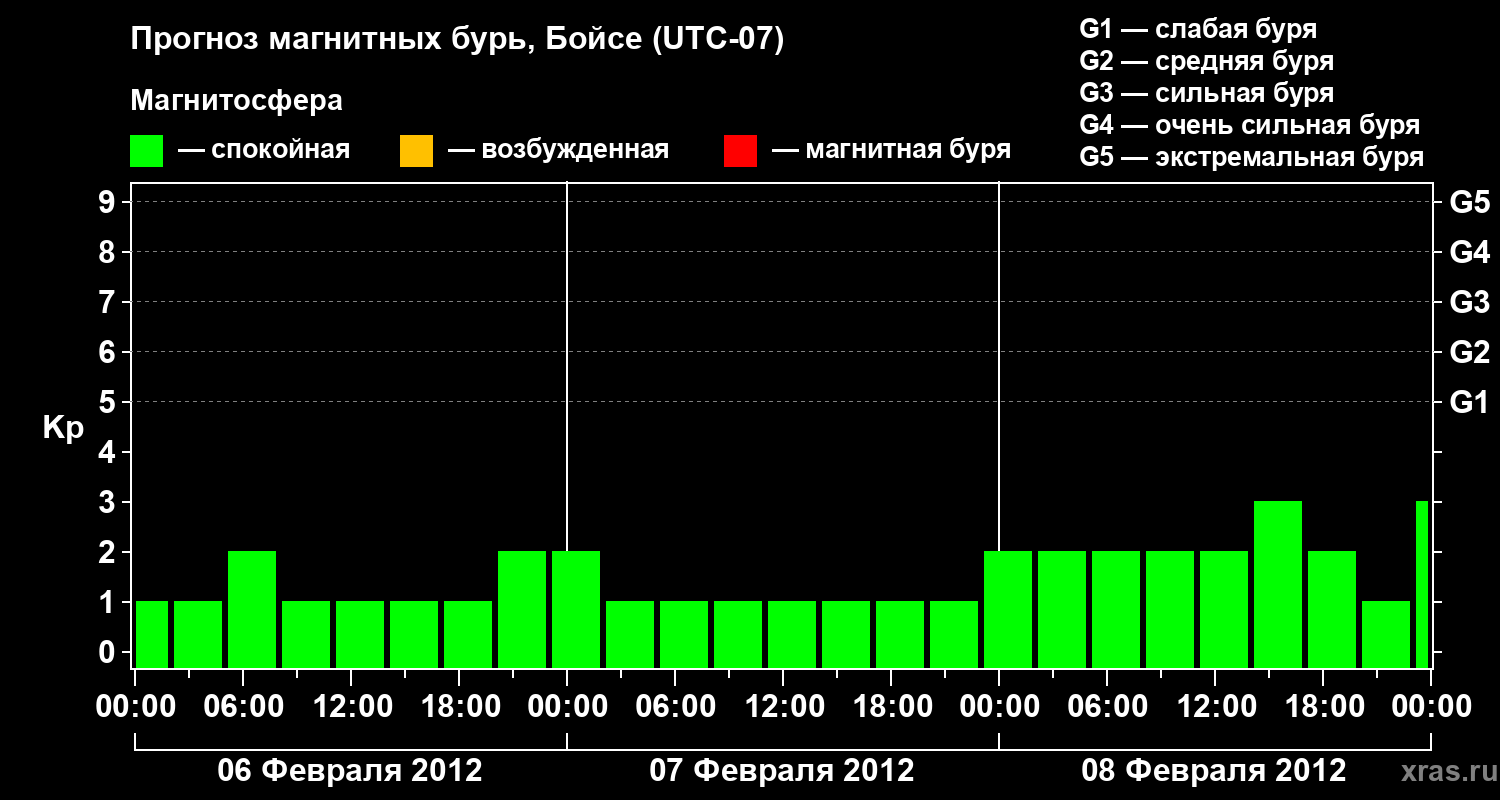 Прогноз магнитных бурь в Бойсе на 6 февраля 2012 года
