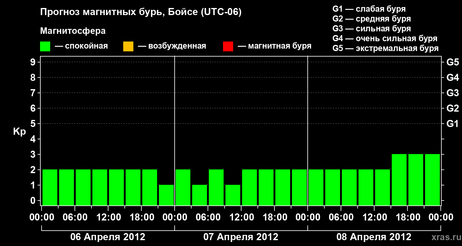 Прогноз магнитных бурь в Бойсе на 6 апреля 2012 года