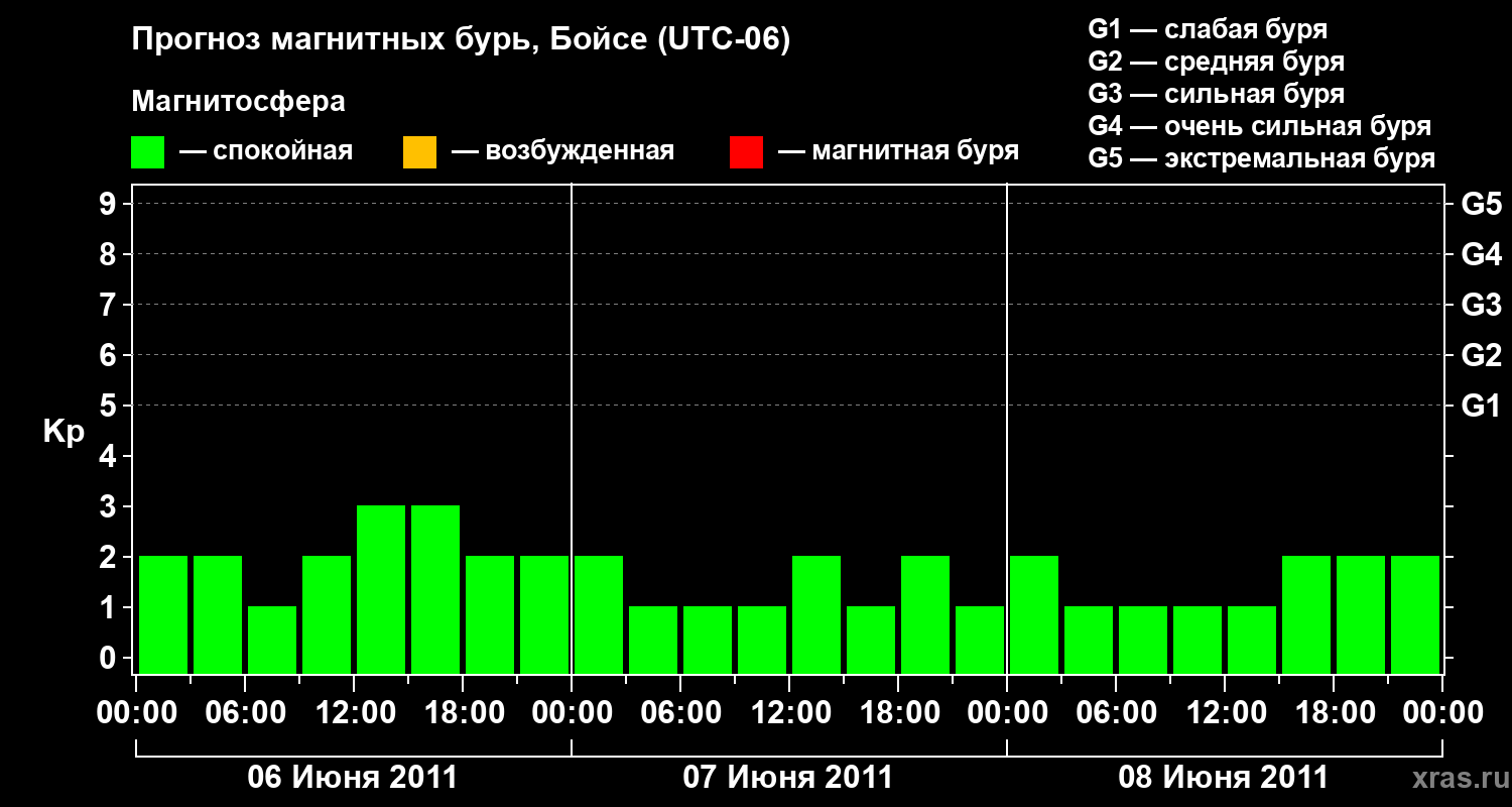 Прогноз магнитных бурь в Бойсе на 6 июня 2011 года