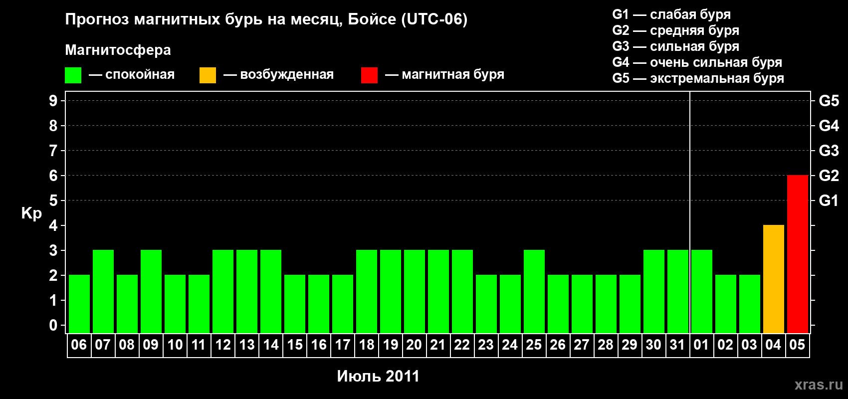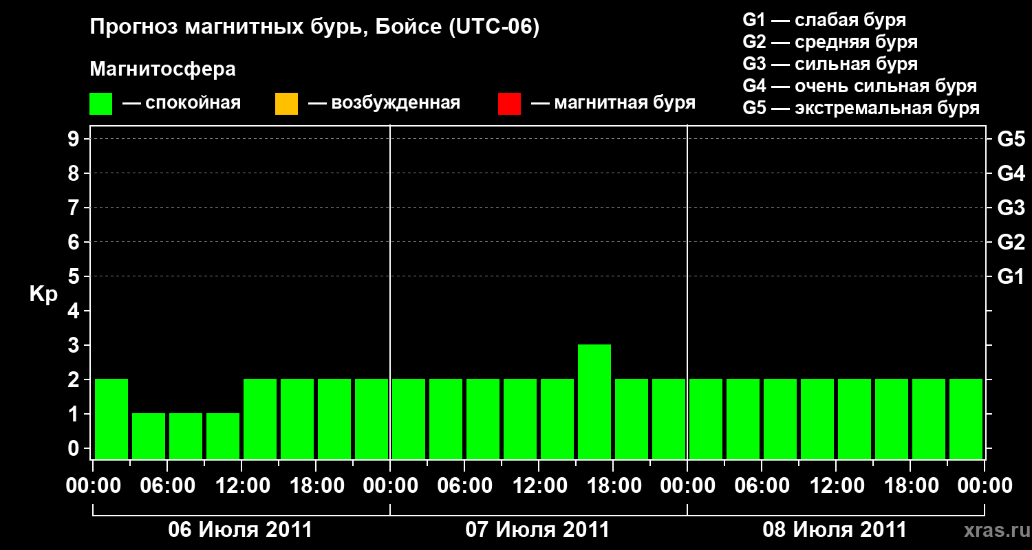 Прогноз магнитных бурь в Бойсе на 6 июля 2011 года