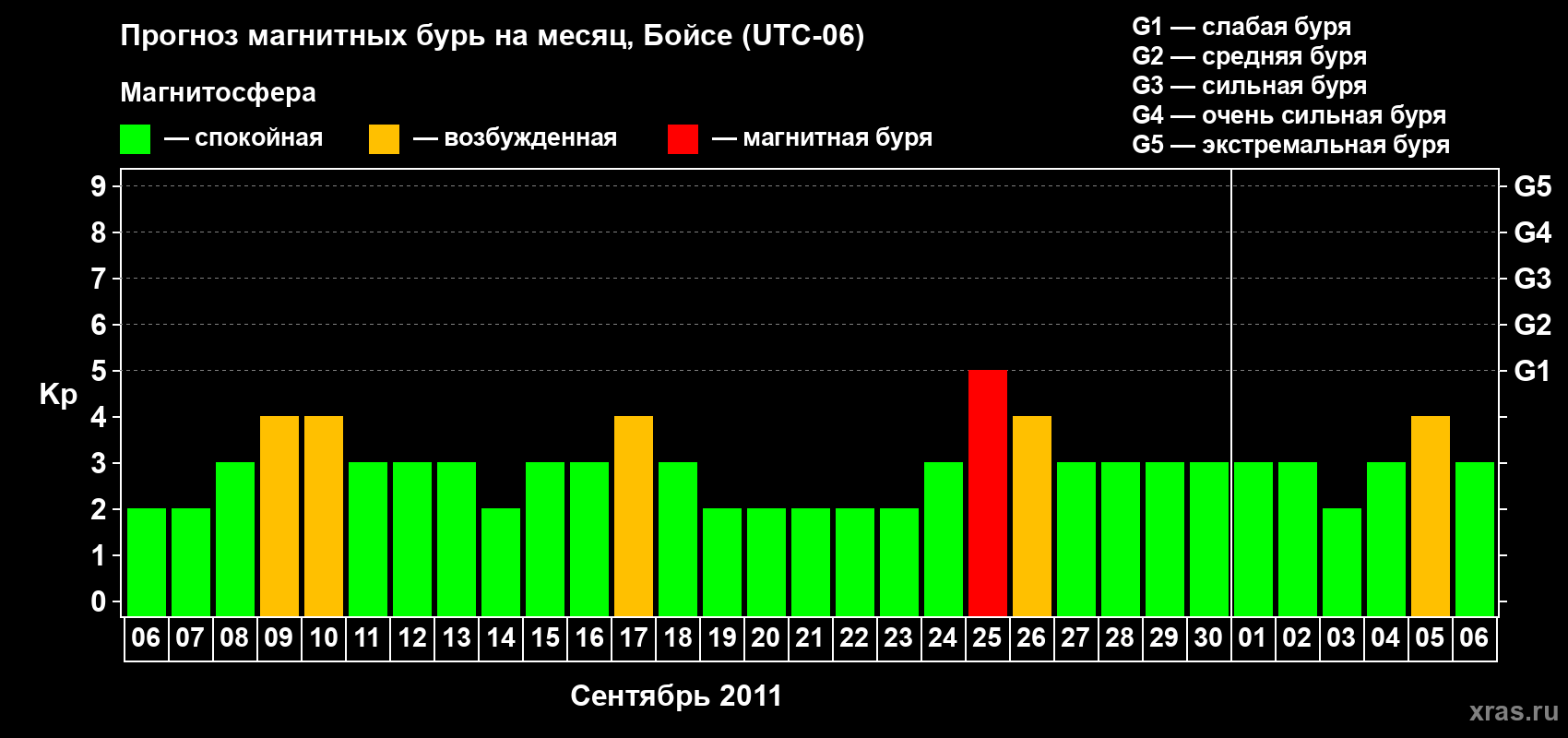 Прогноз магнитных бурь в Бойсе на 6 сентября 2011 года