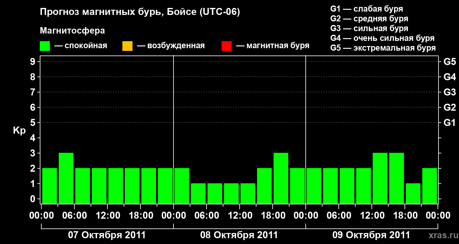 Прогноз магнитных бурь в Бойсе на 7 октября 2011 года