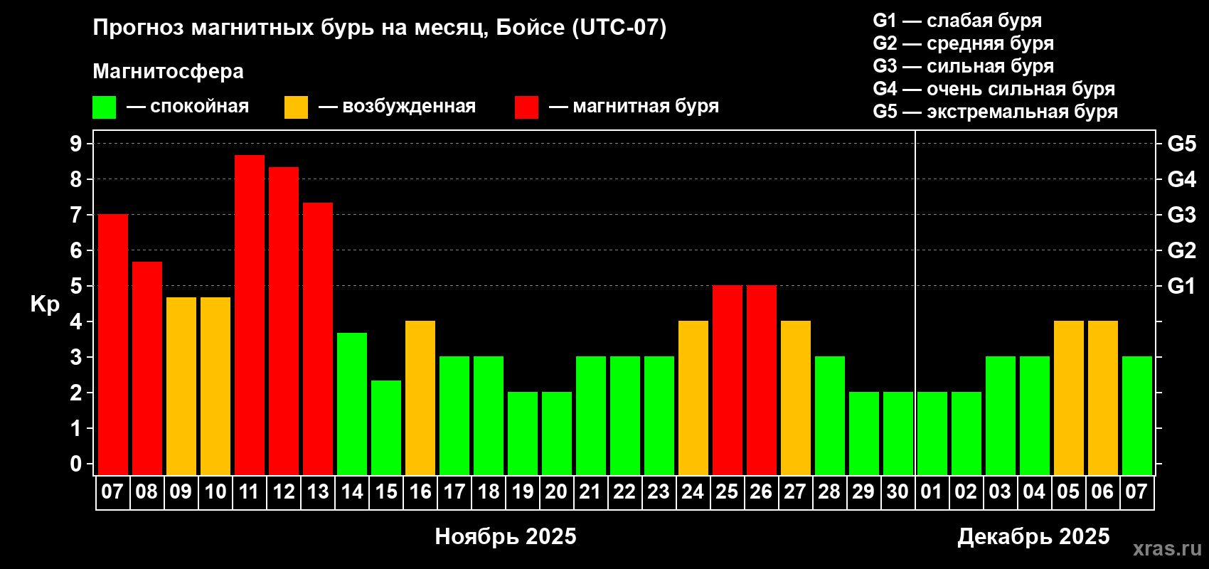 Прогноз магнитных бурь в Бойсе — 7 ноября 2025 года