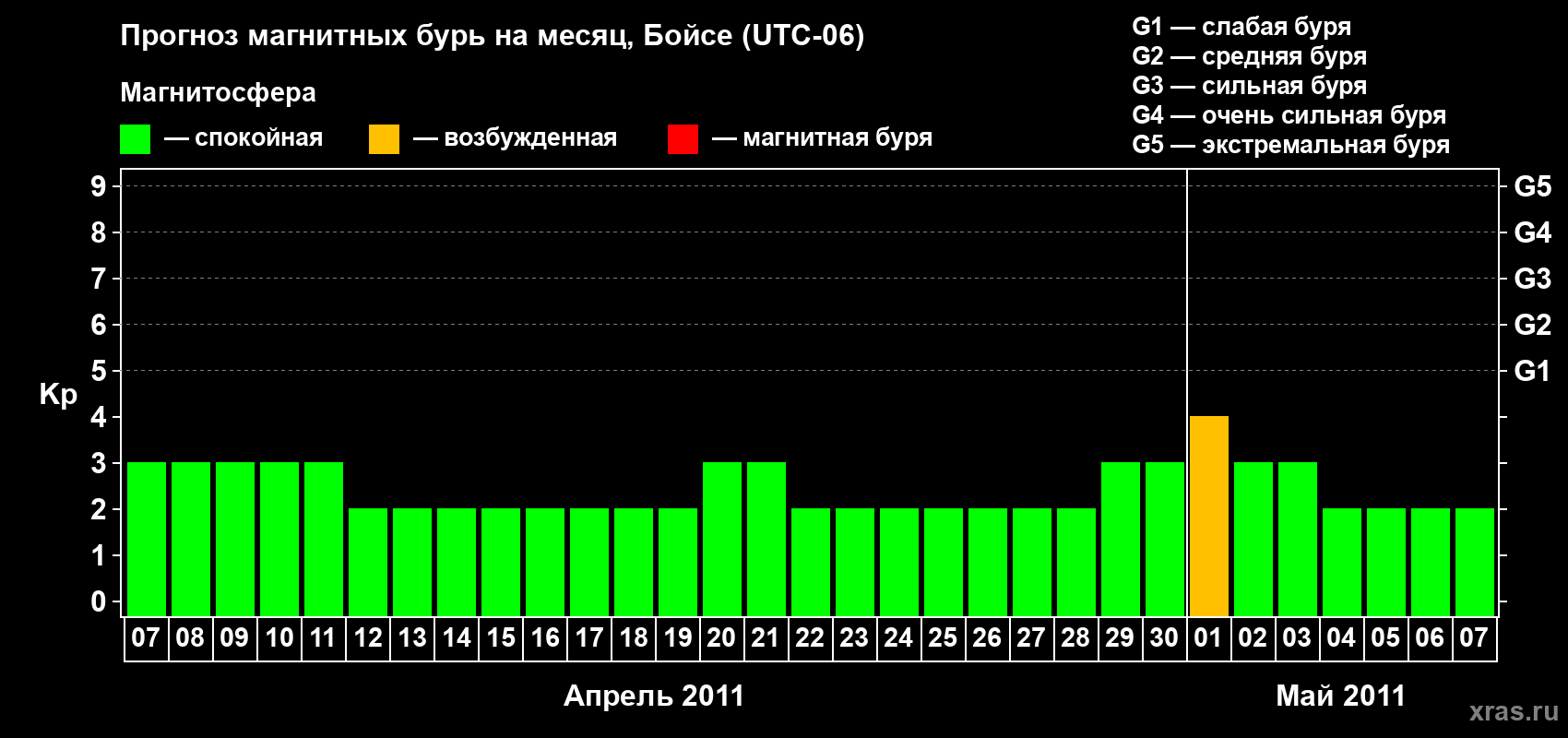 Прогноз магнитных бурь в Бойсе на 7 апреля 2011 года