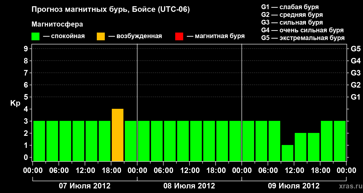 Прогноз магнитных бурь в Бойсе — 7 июля 2012 года