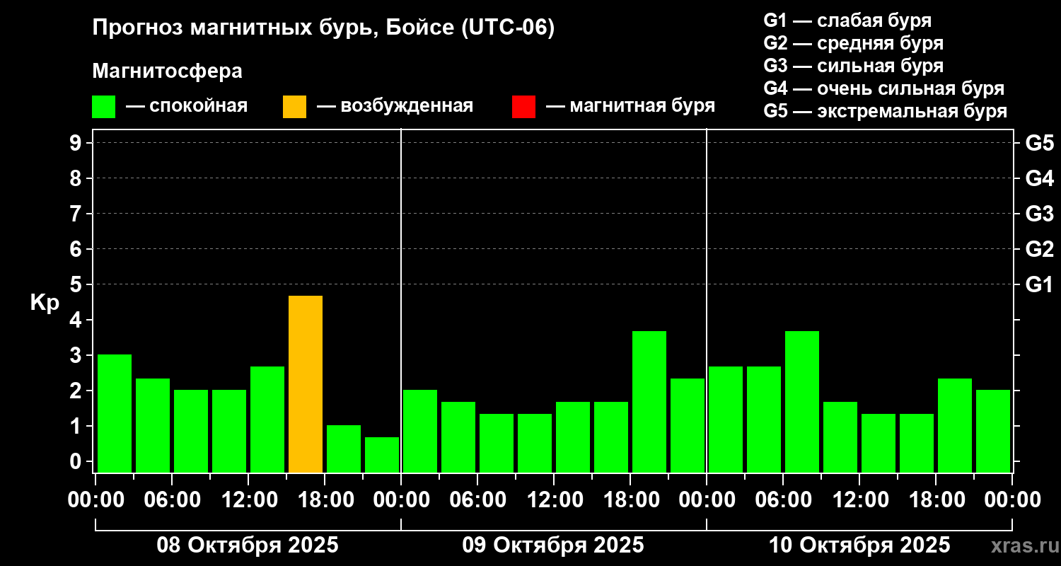 Прогноз магнитных бурь в Бойсе на 8 октября 2025 года