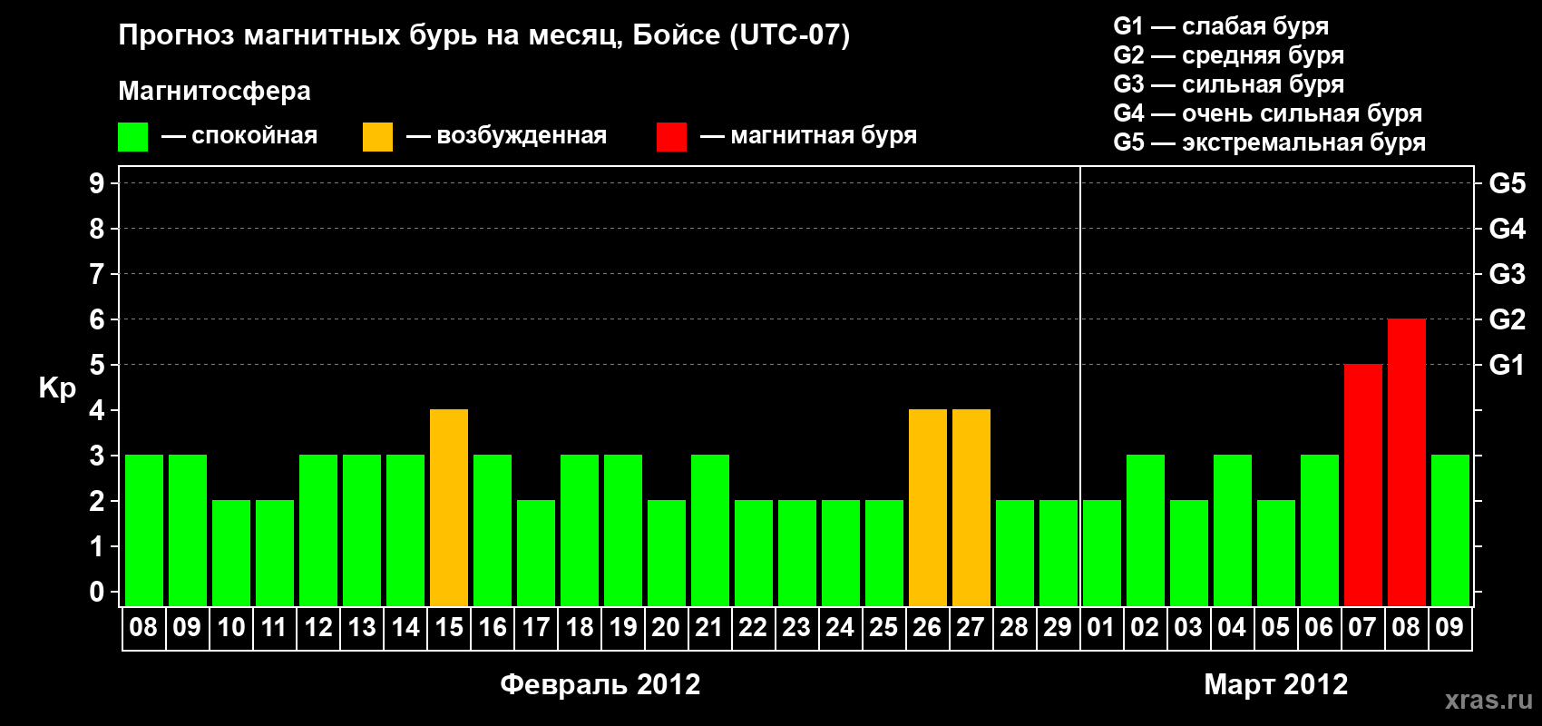 Прогноз магнитных бурь в Бойсе на 8 февраля 2012 года