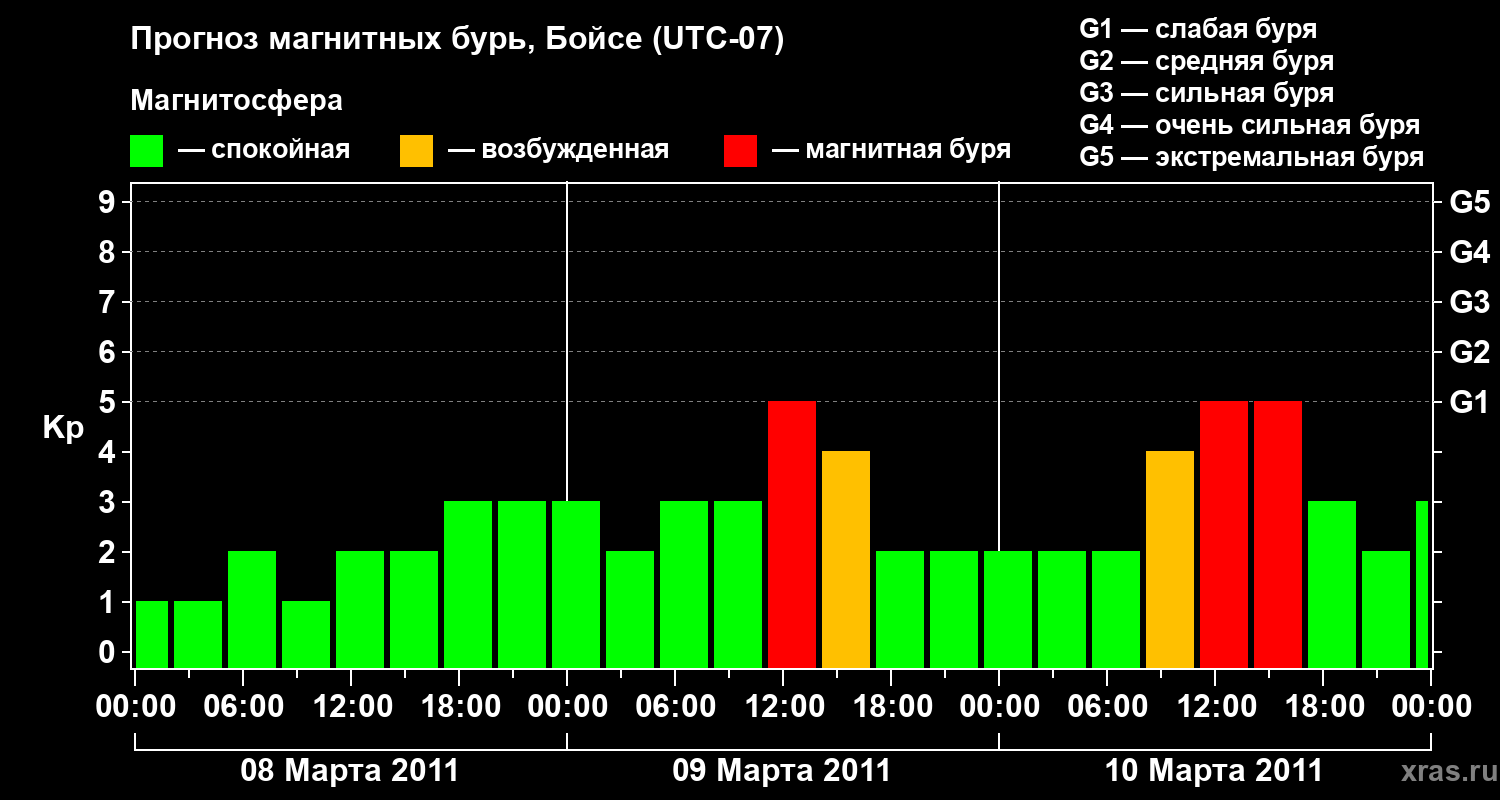 Прогноз магнитных бурь в Бойсе — 8 марта 2011 года