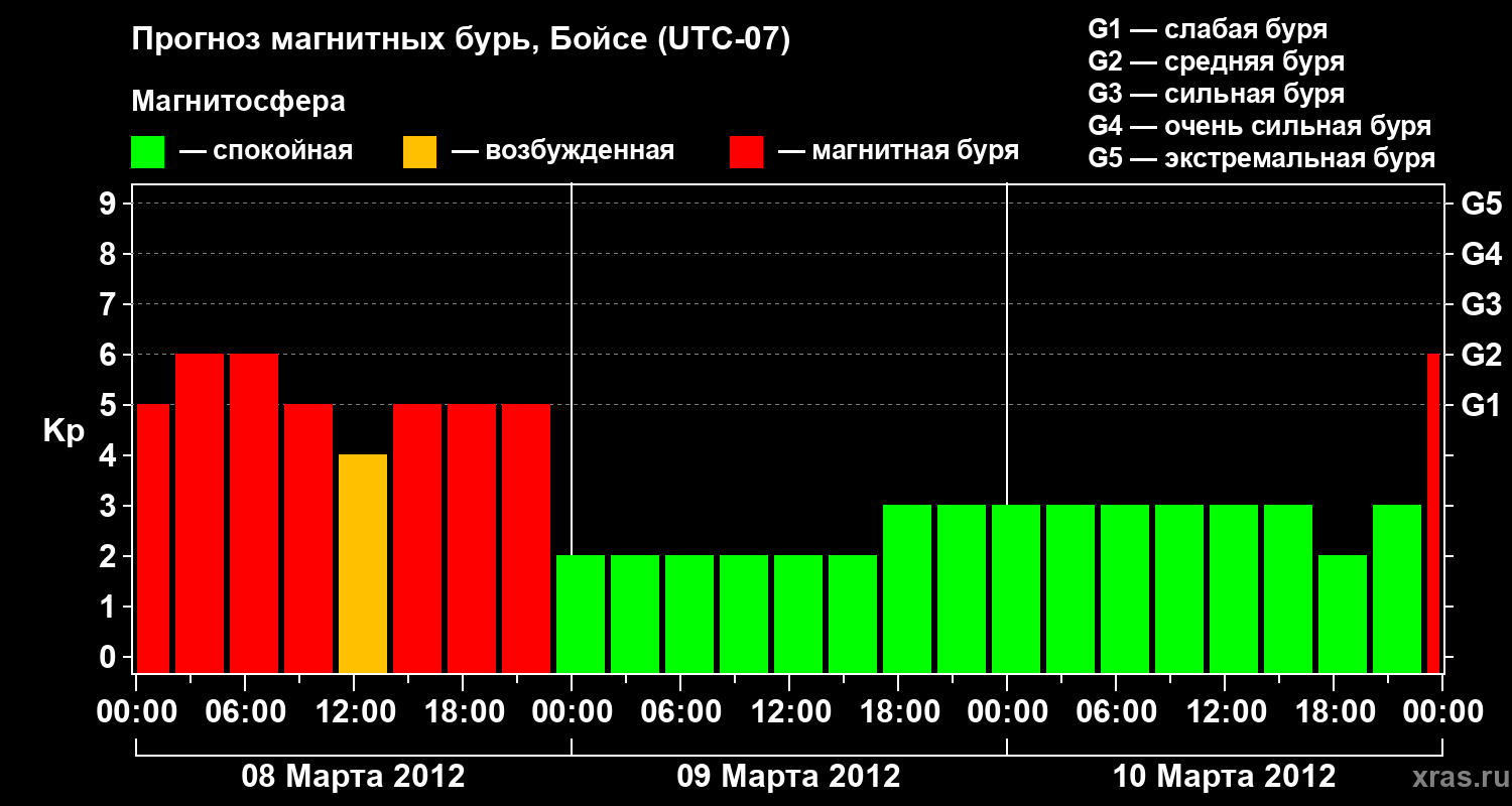 Прогноз магнитных бурь в Бойсе на 8 марта 2012 года