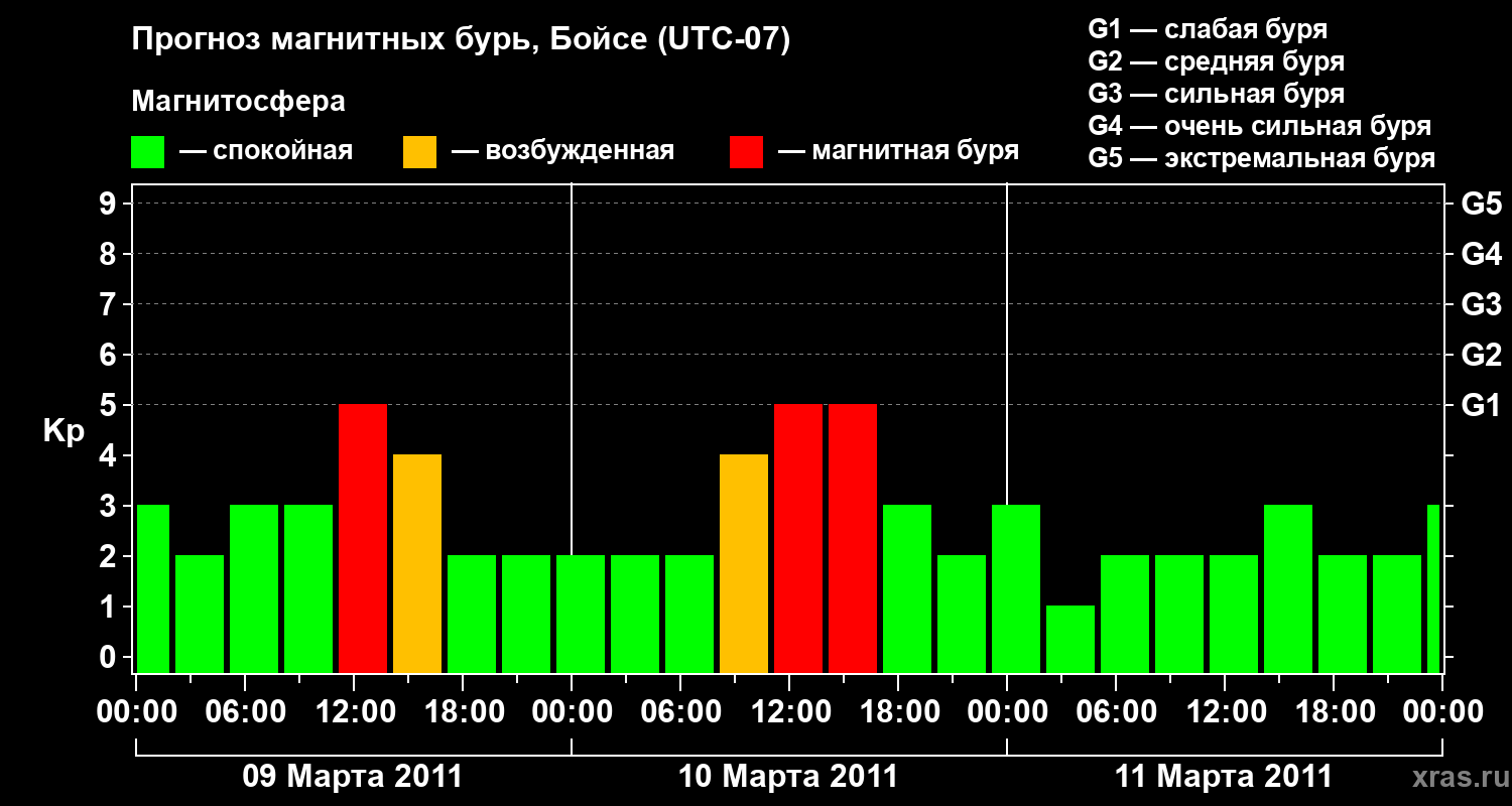 Прогноз магнитных бурь в Бойсе на 9 марта 2011 года