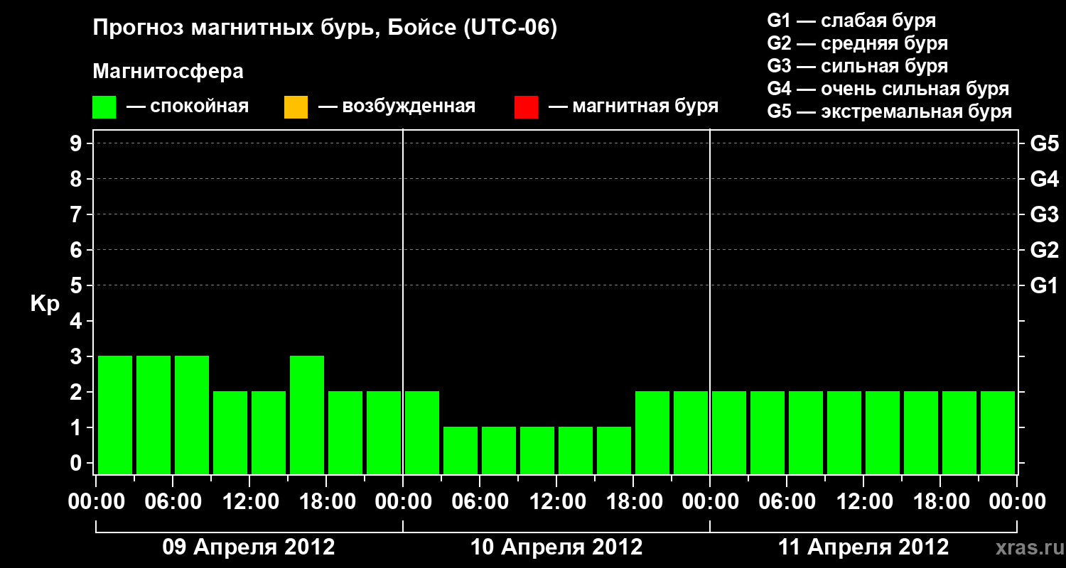 Прогноз магнитных бурь в Бойсе на 9 апреля 2012 года
