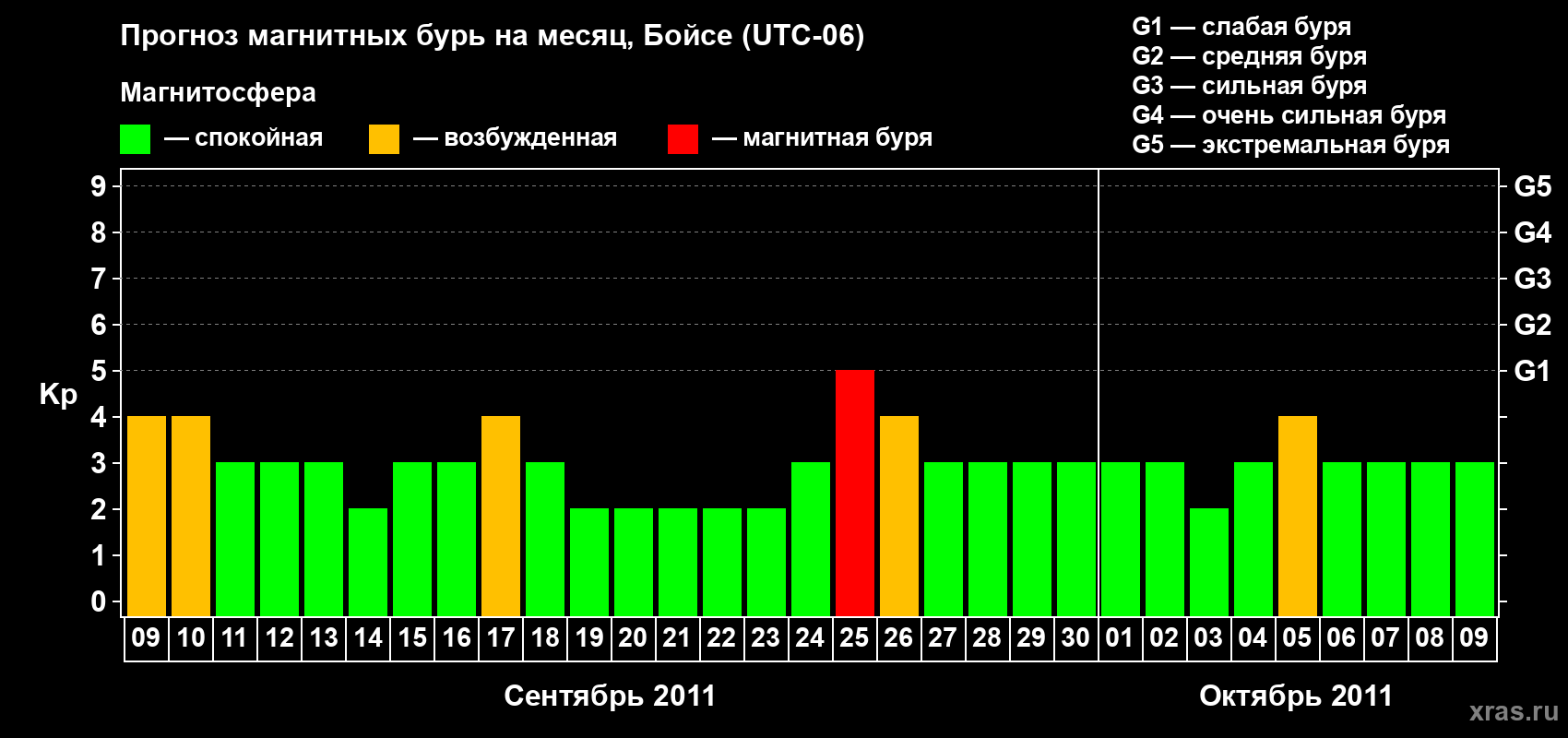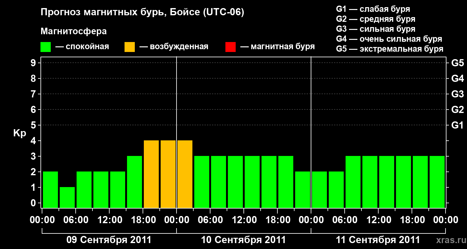 Прогноз магнитных бурь в Бойсе на 9 сентября 2011 года