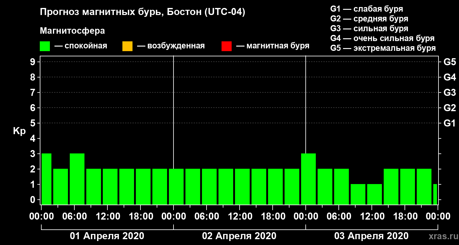 Прогноз магнитных бурь в Бостоне — 1 апреля 2020 года
